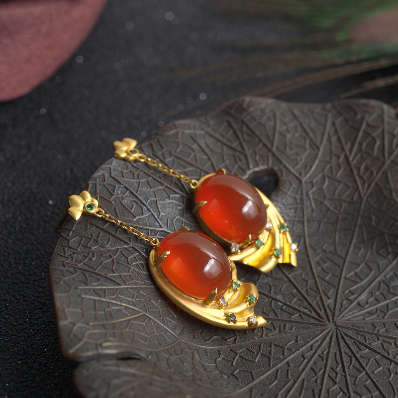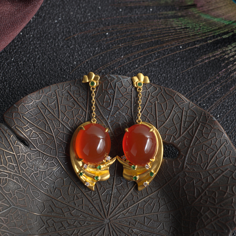 • 18K冰红南红耳坠
