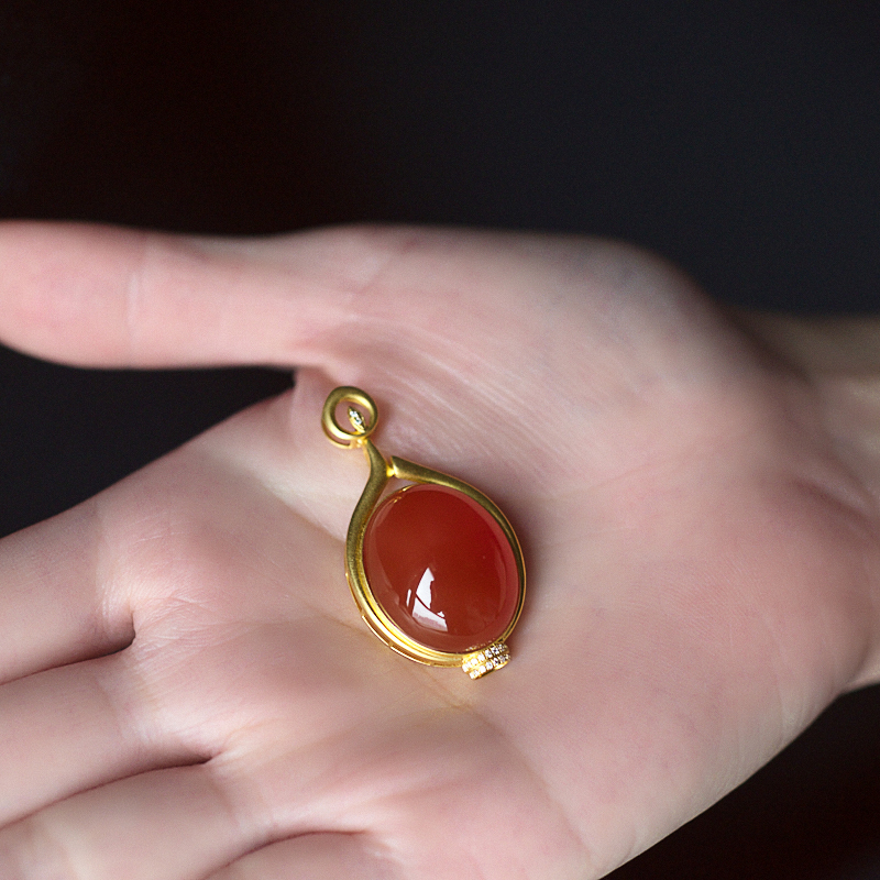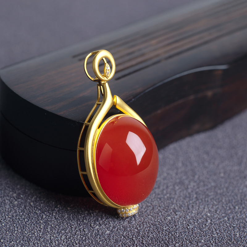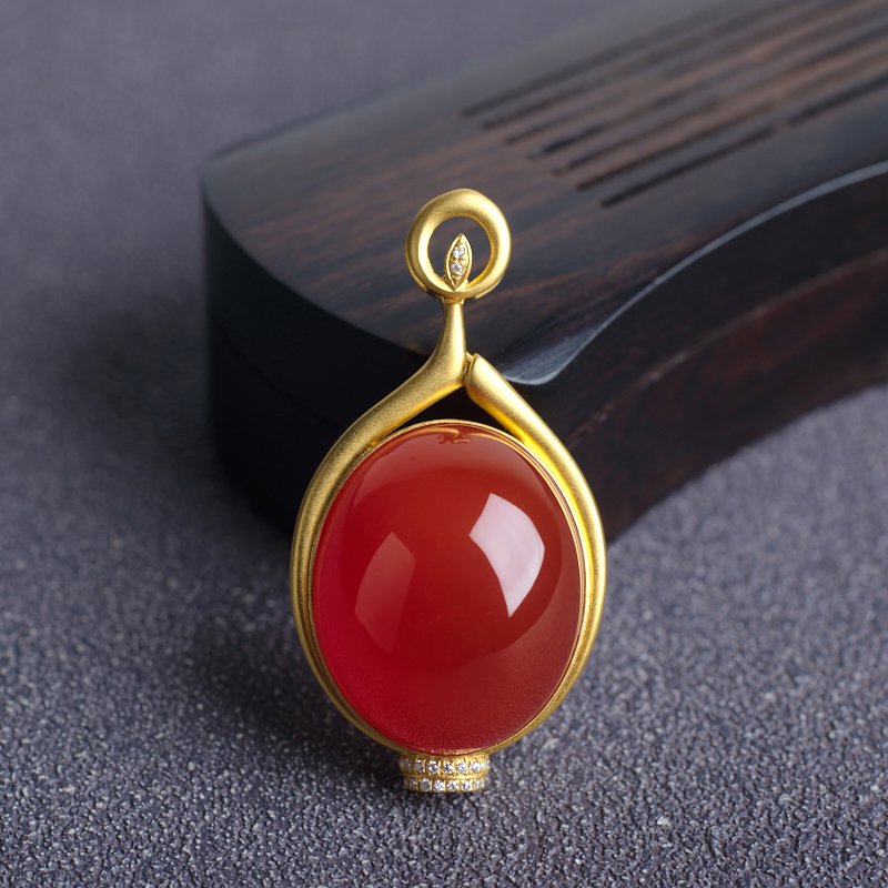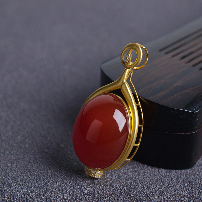 • 18K冰红南红吊坠