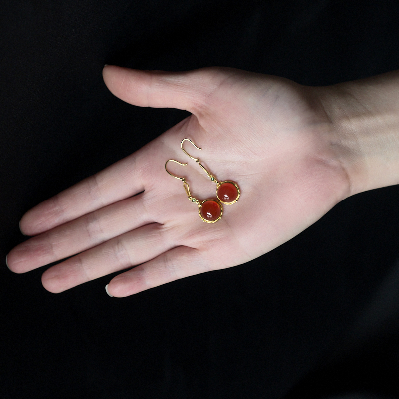 • 18K冰红南红圆形耳环