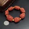 • [产品描述] 柿子红南红龙头手链串,选料保山,浓郁柿子红。光泽柔和,精光内敛,胶质感强,庄重含蓄,苏工雕刻龙头,线条圆润流畅,瑞龙霸气十足,威猛而不邪恶。似立山崖险恶之巅,仰苍穹之顶,俯瞰深丛林立,驱邪避恶,守护一方圣土。