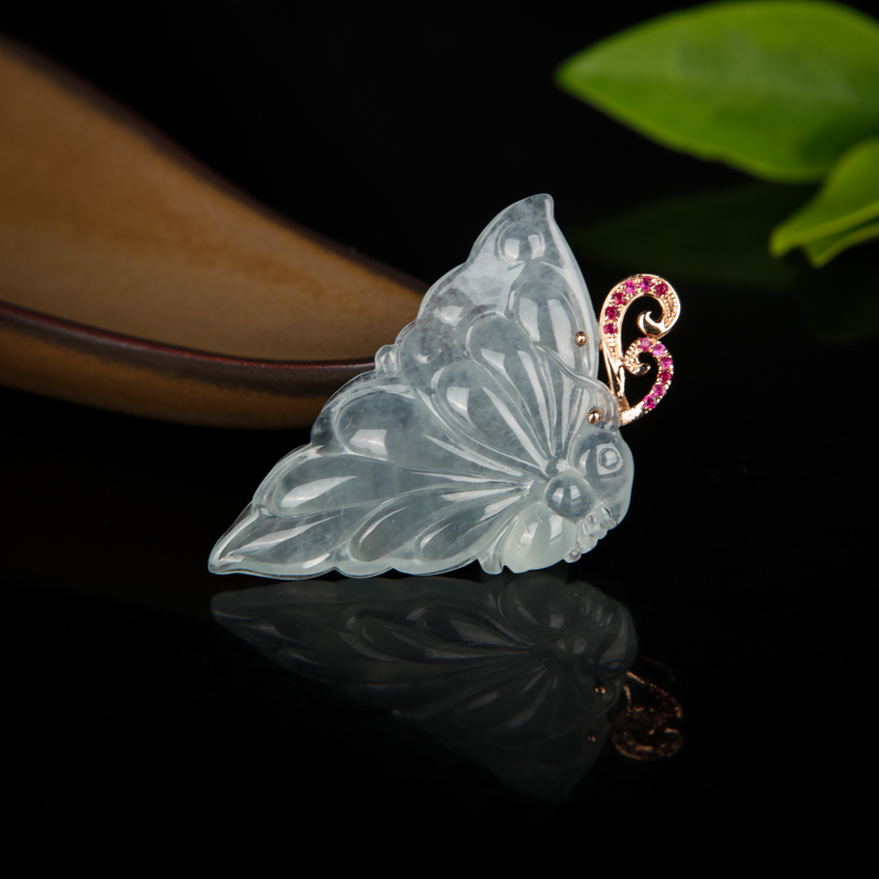 • 18K冰种翡翠蝴蝶吊坠-红掌柜