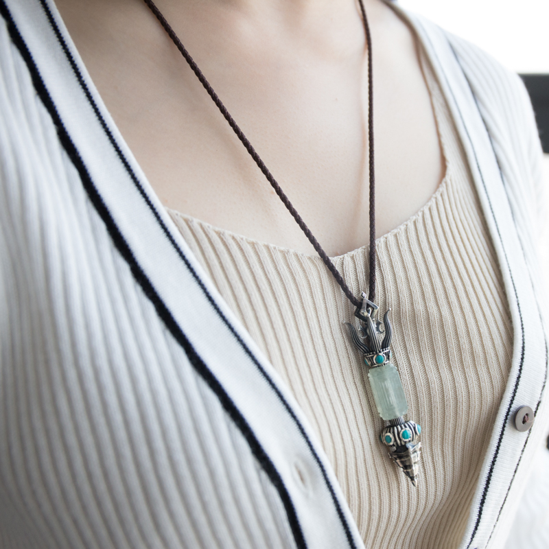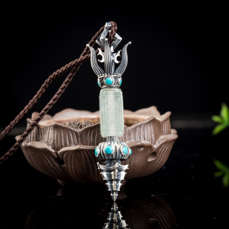 • 银镶冰种浅绿翡翠降魔杵吊坠