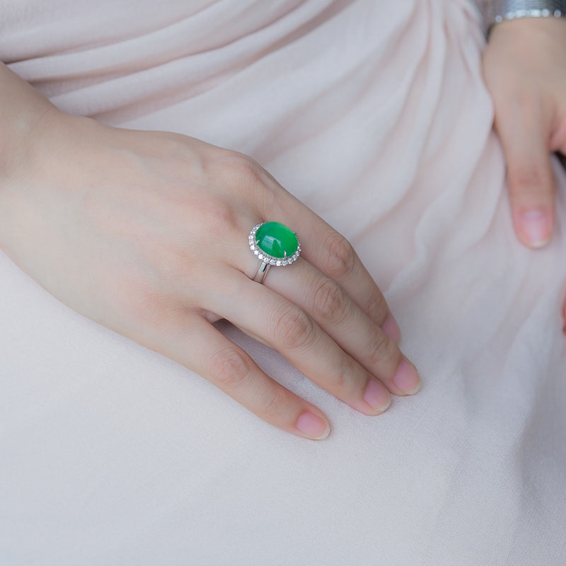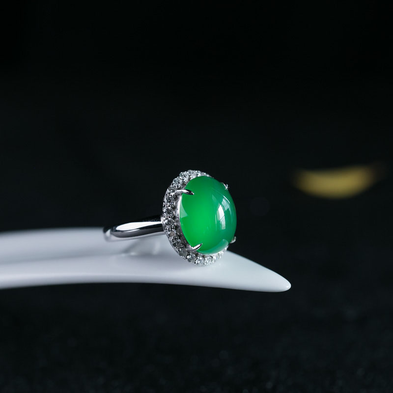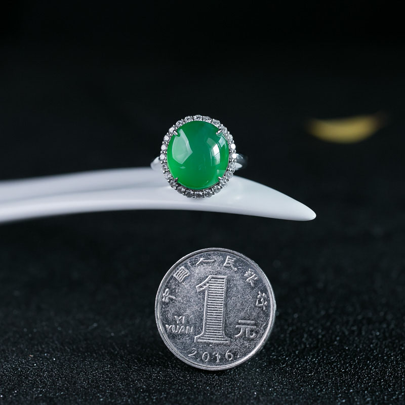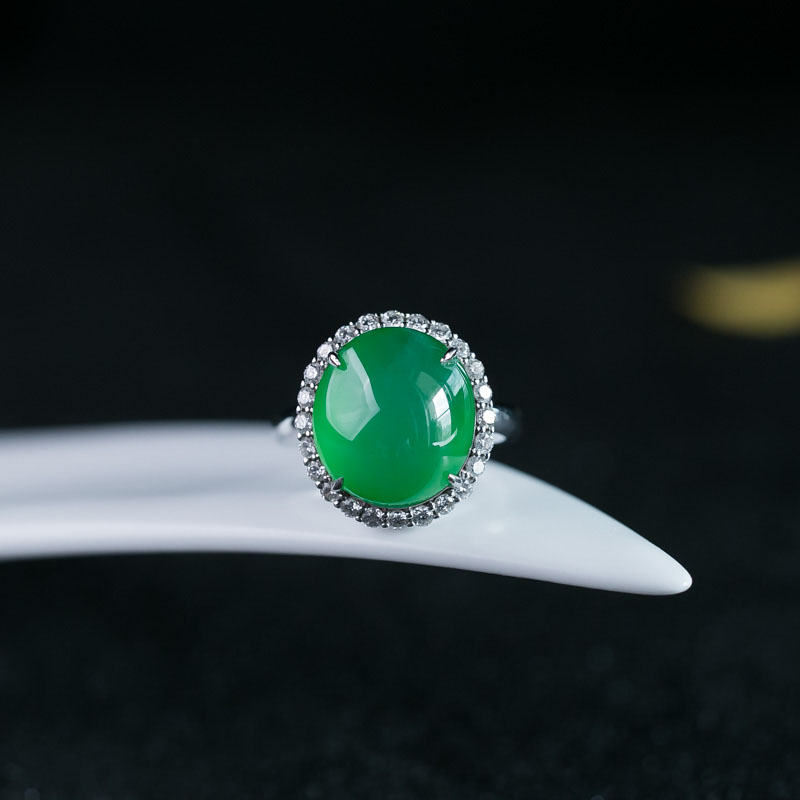 • 18K冰种翠色翡翠戒指