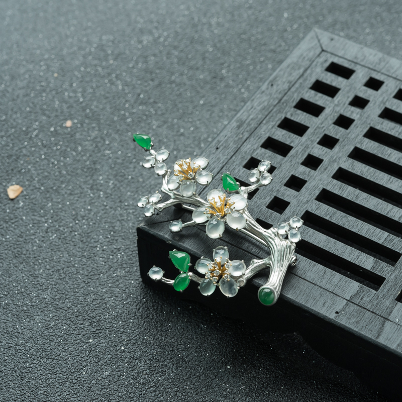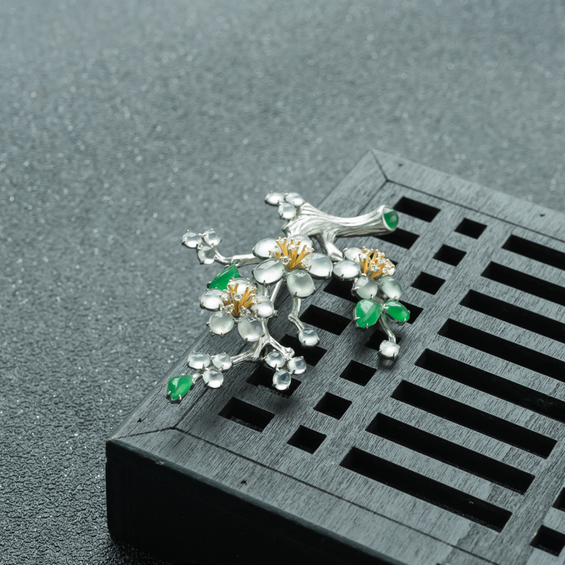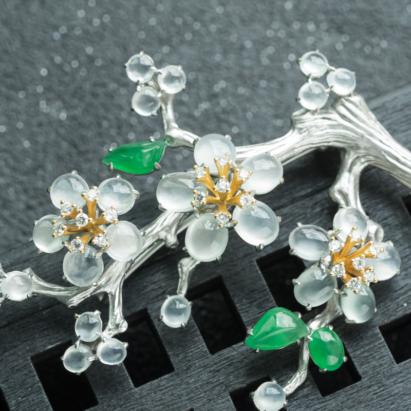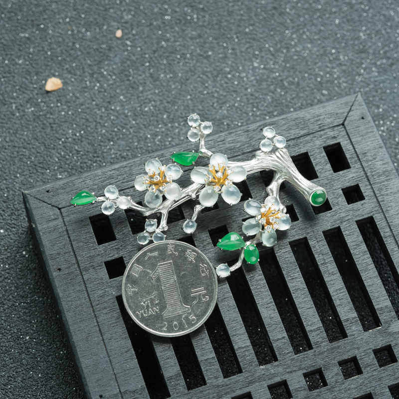 • [名  称] 18K冰种翡翠傲雪寒梅胸针