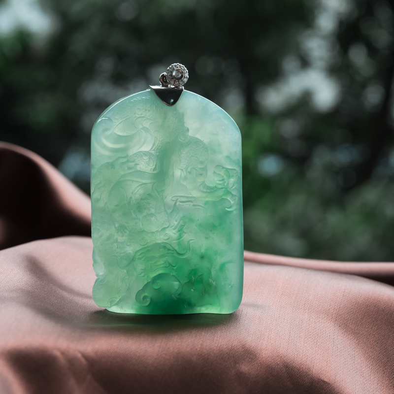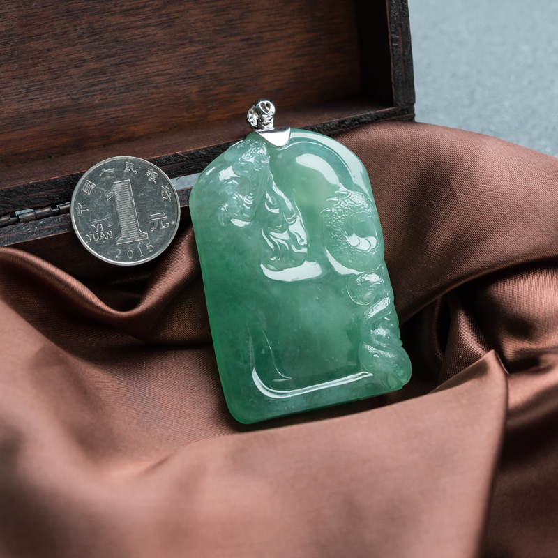 • 18K冰种飘翠翡翠飞龙在天吊坠