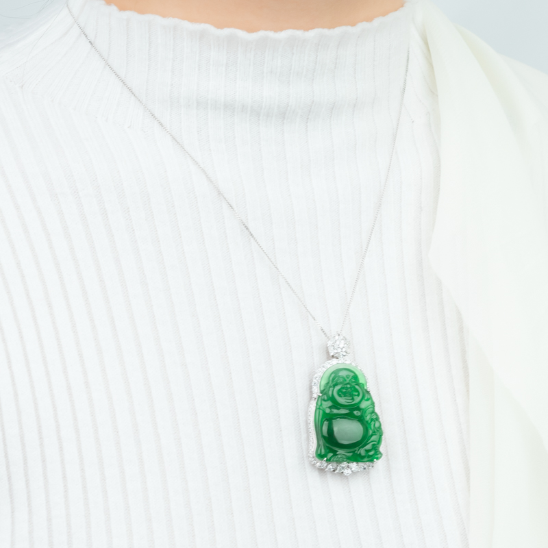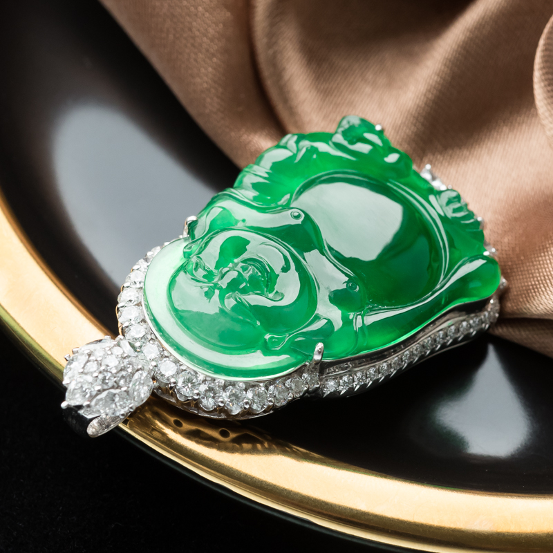 • 18K冰种阳绿翡翠弥勒佛吊坠