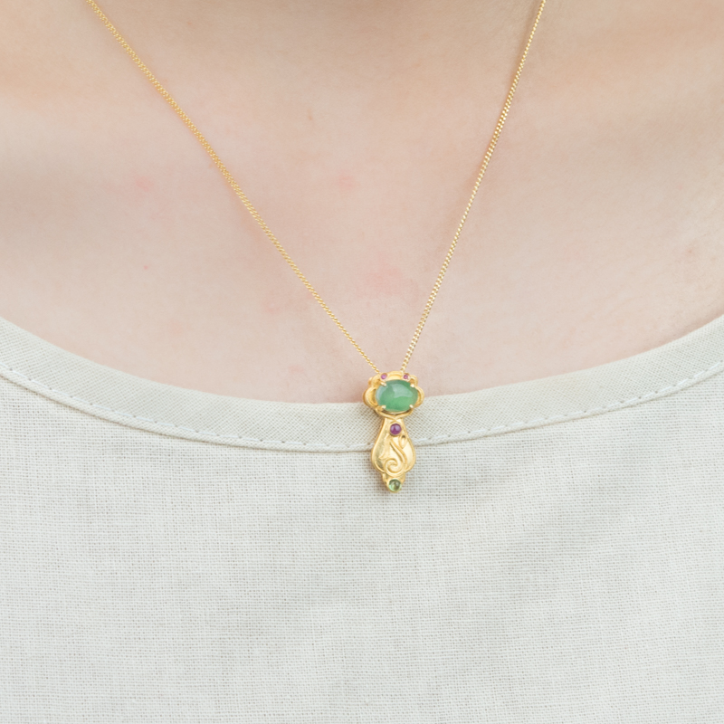 为了让珠宝的价值得到更大程度的体现,每一个作品都是根据料子本身做专业的设计,让每件作品都有灵魂。设计好以后会根据设计创意做专业的镶嵌或雕刻,确保每个接口都严丝合缝,每一刀都流畅自如