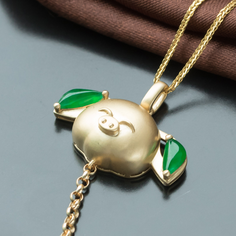 • [名  称] 18K冰种翠绿翡翠亥猪吊坠