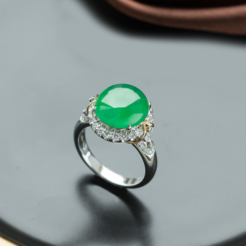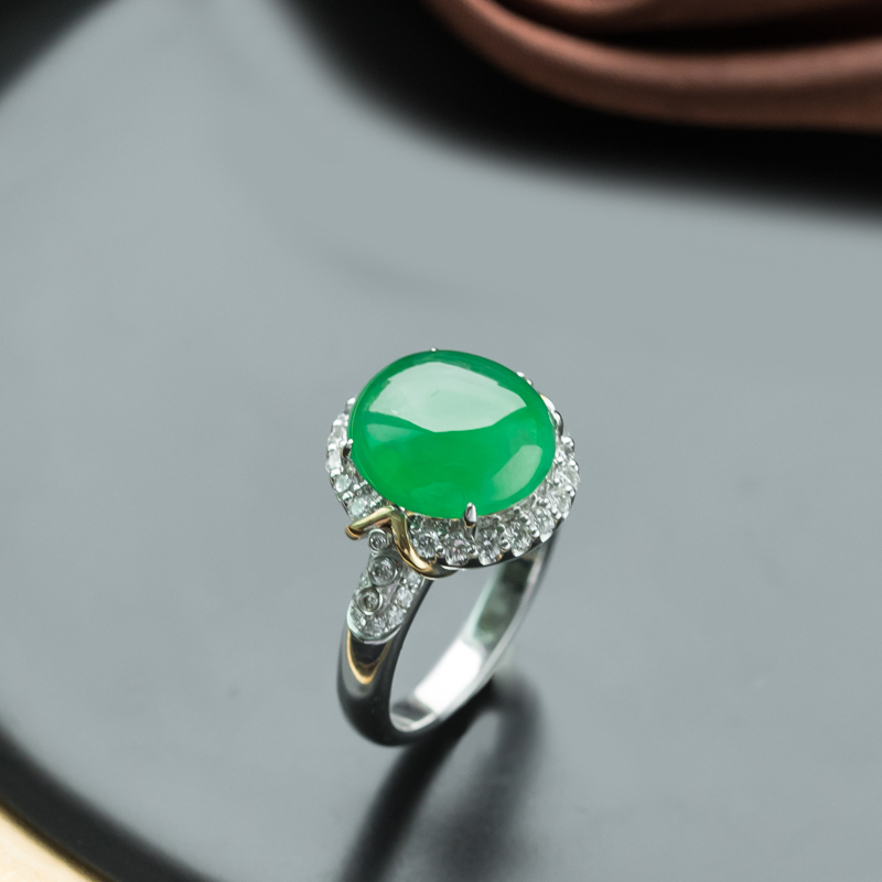 • 18K冰种阳绿翡翠戒指