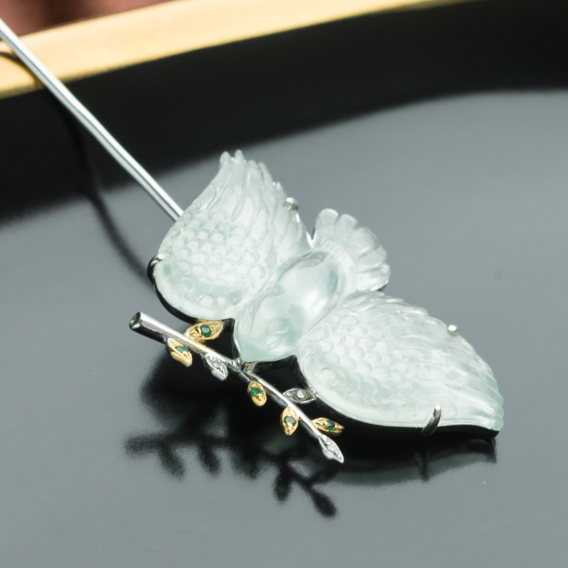 • [名  称] 18K冰种翡翠和平鸽胸针