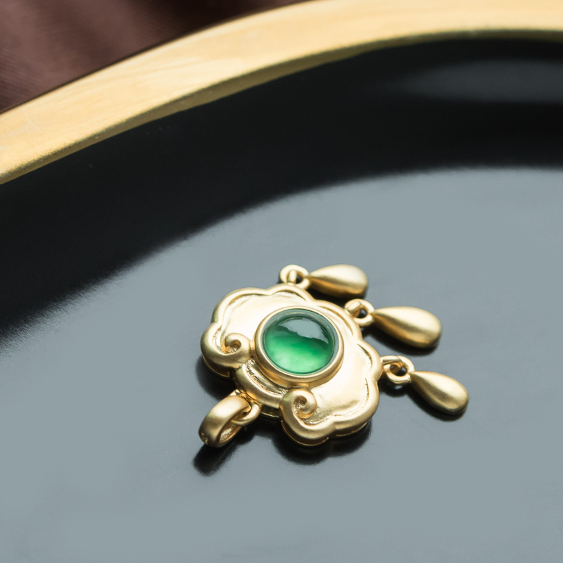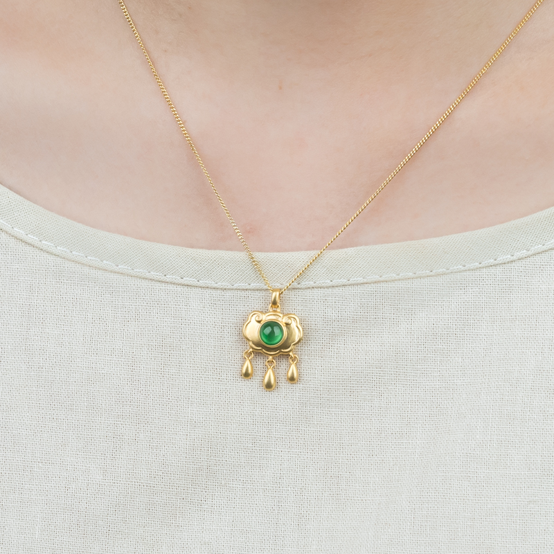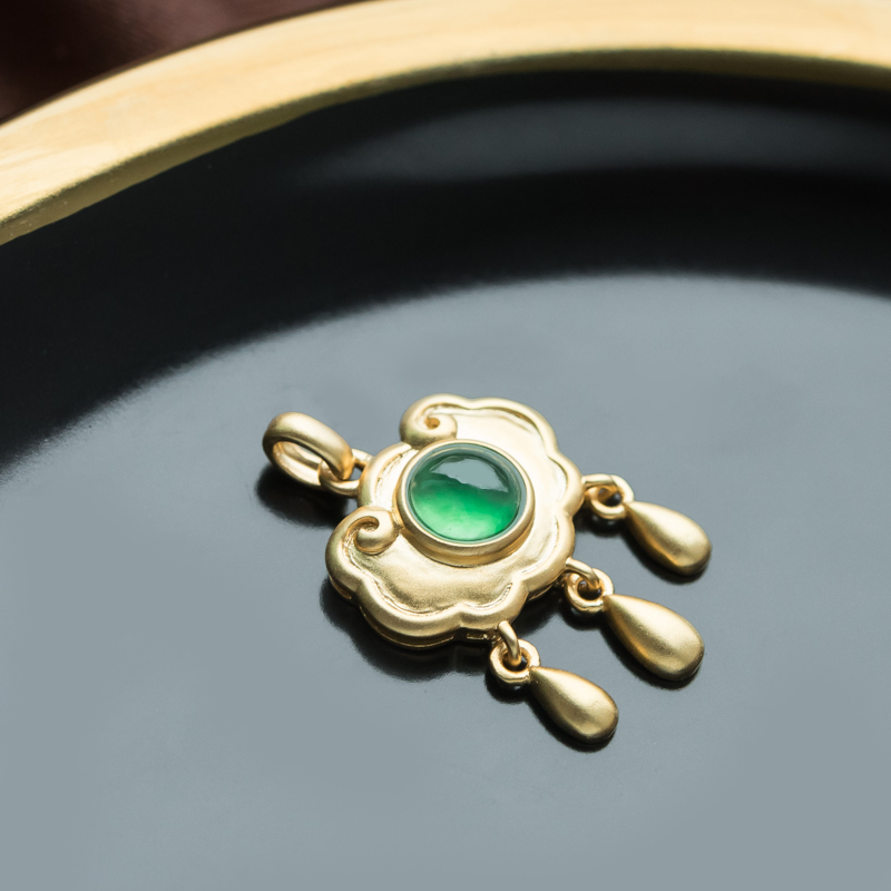 • 18K冰种翠绿翡翠如意锁吊坠
