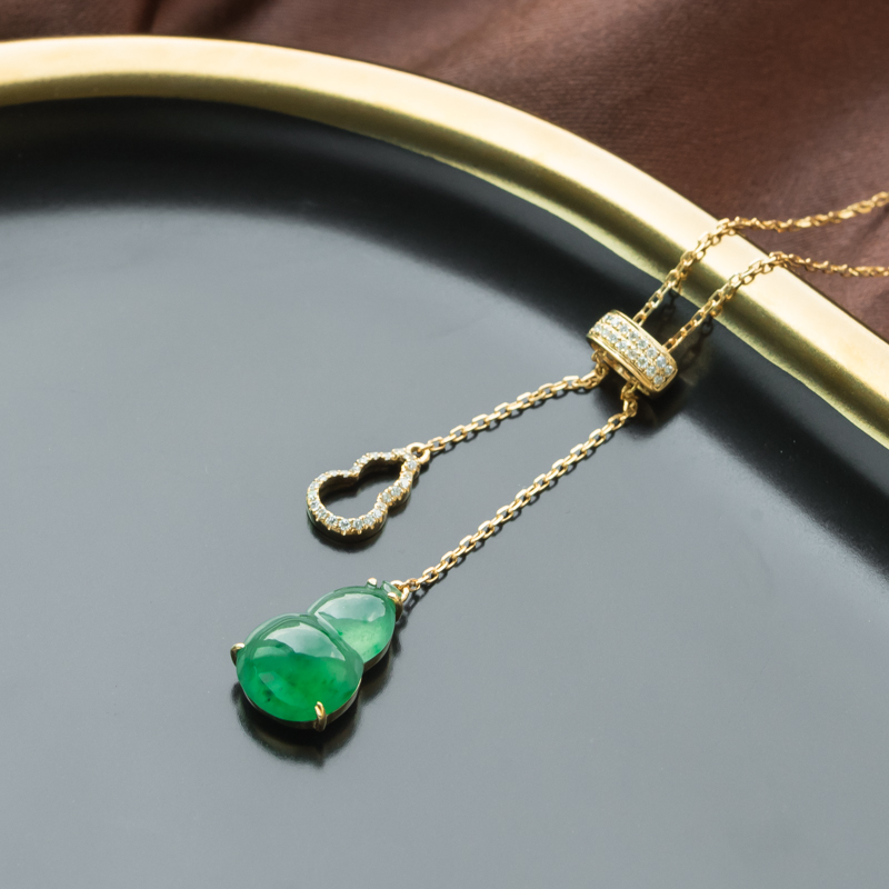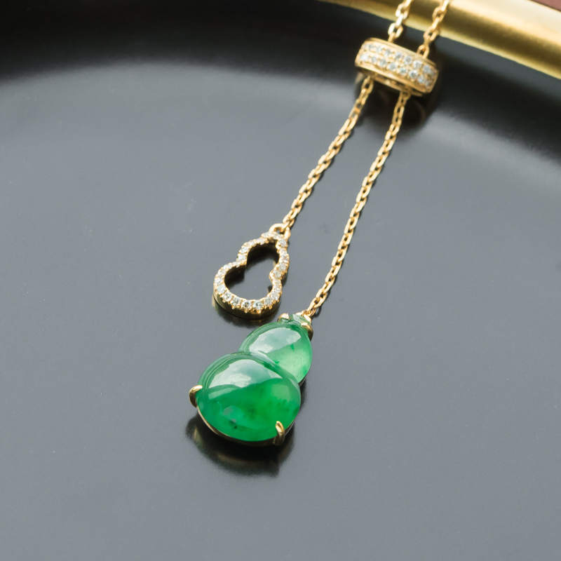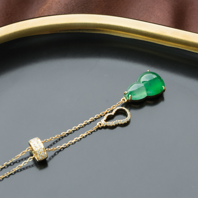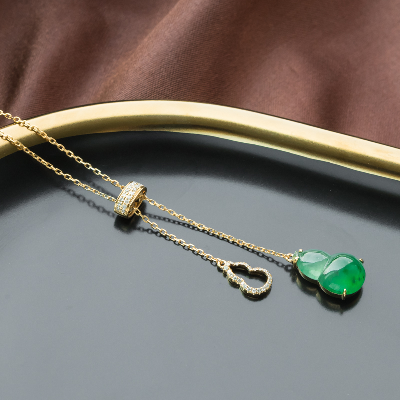 • [名  称] 18K冰种翠绿翡翠福禄项链