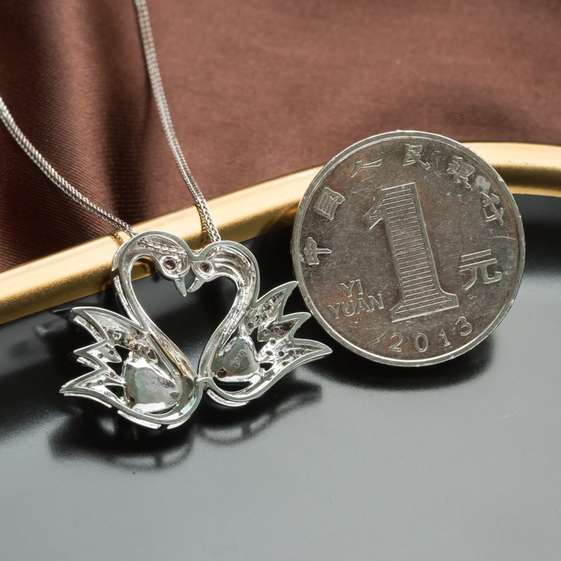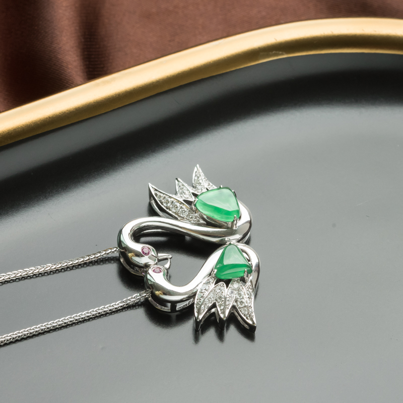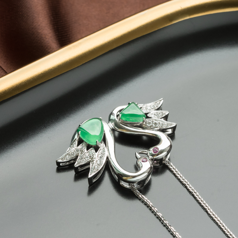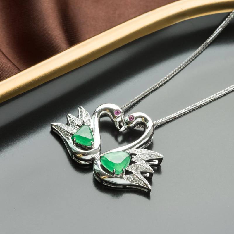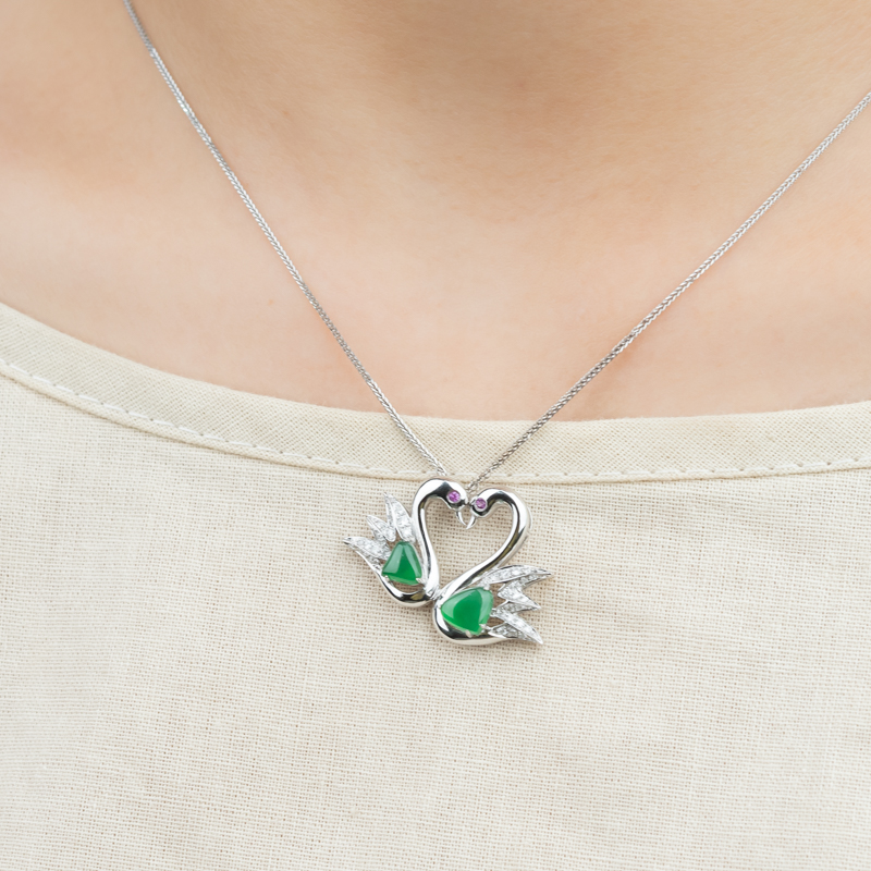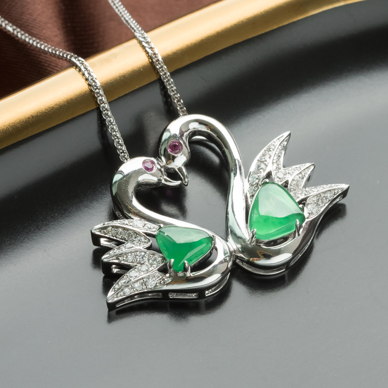 • 18K冰种翠绿翡翠天鹅吊坠