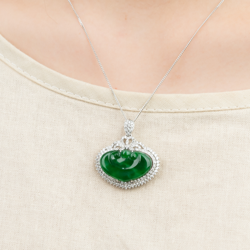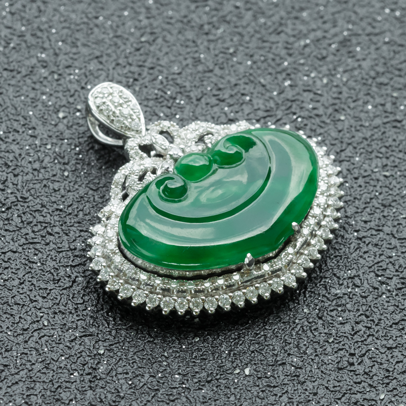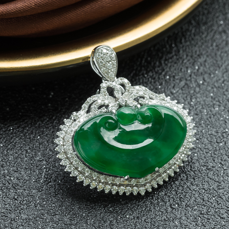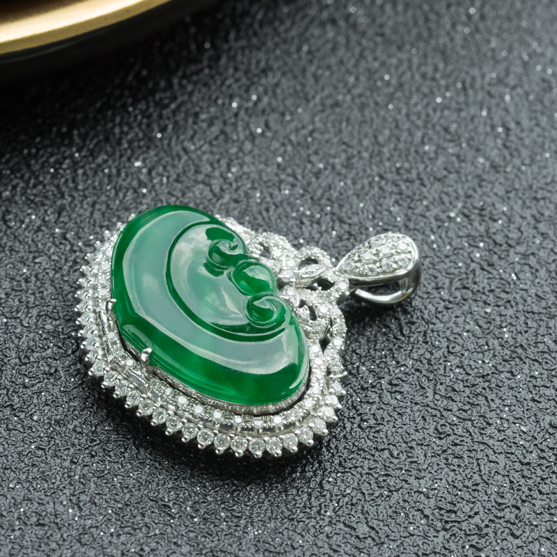 • [名  称] 18K冰种翠绿翡翠如意吊坠