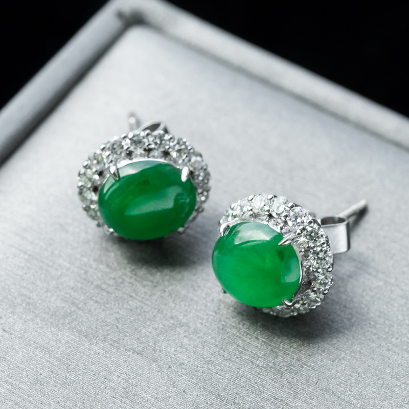 • [名  称] 18K冰种阳绿翡翠耳钉