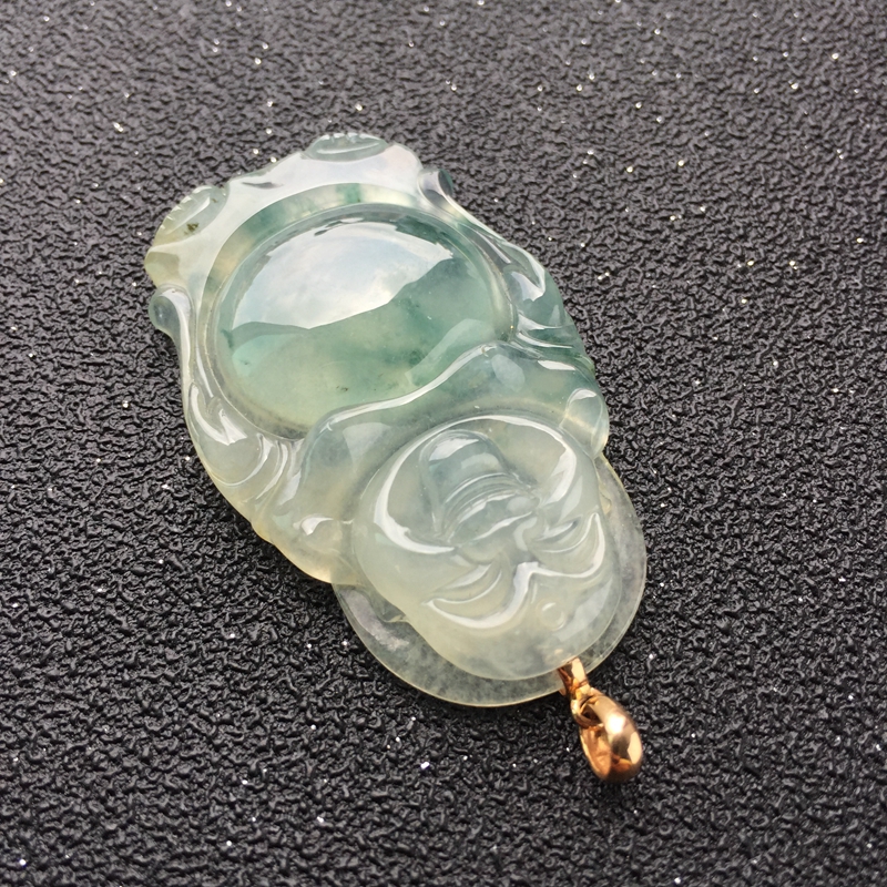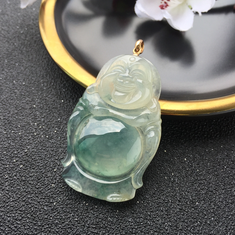 • 18K冰种飘花翡翠弥勒佛吊坠