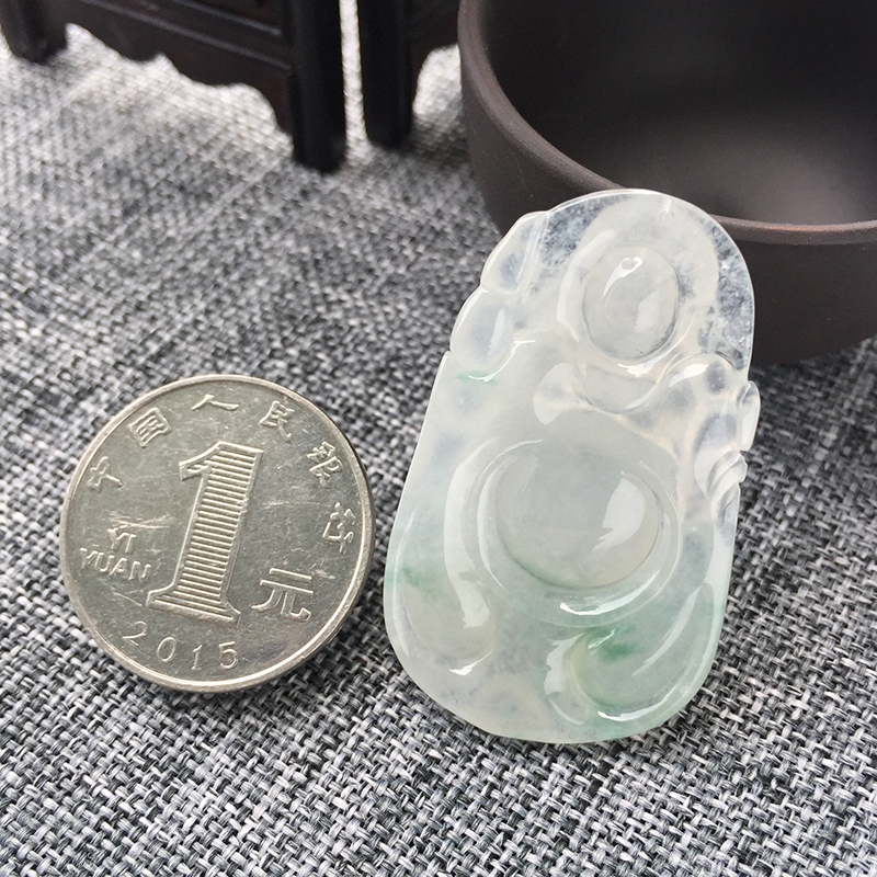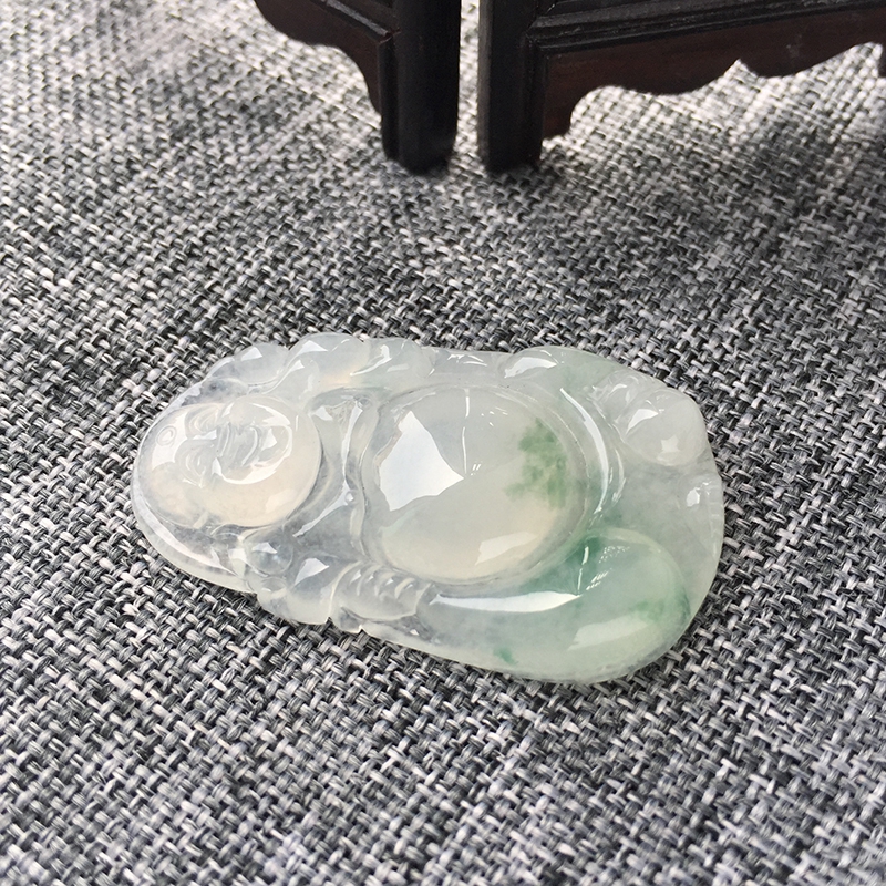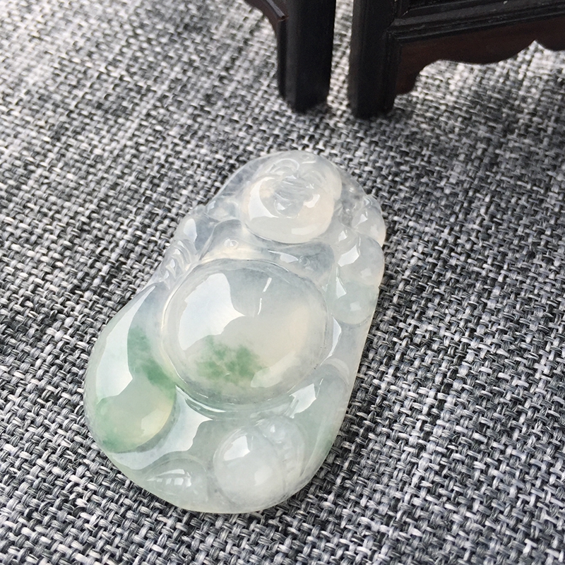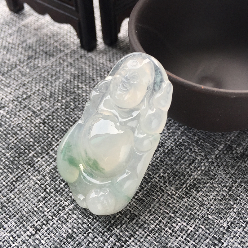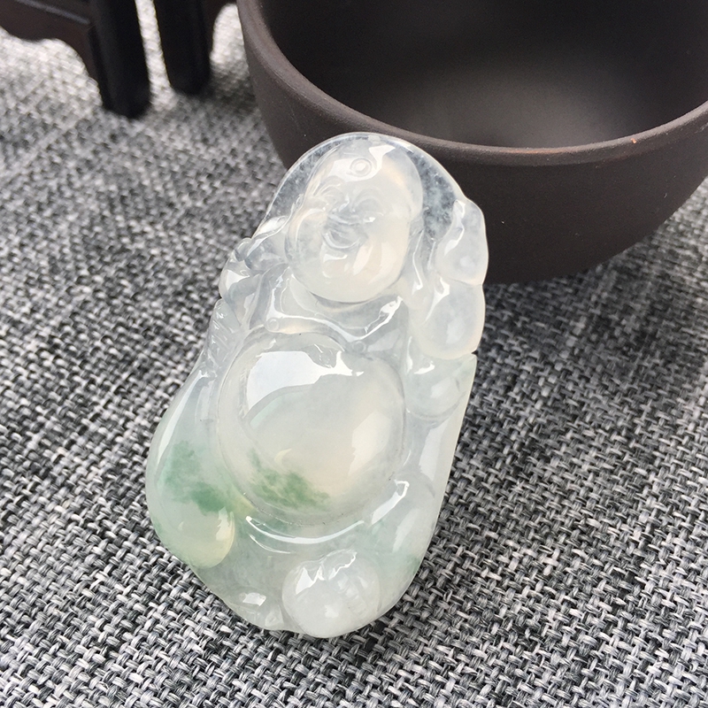 • 冰种飘花翡翠弥勒佛吊坠