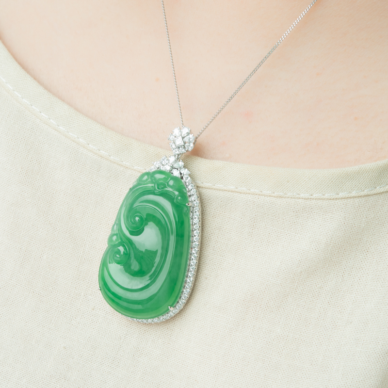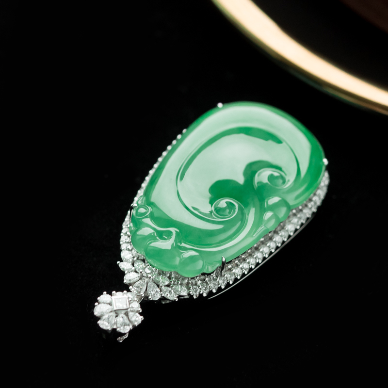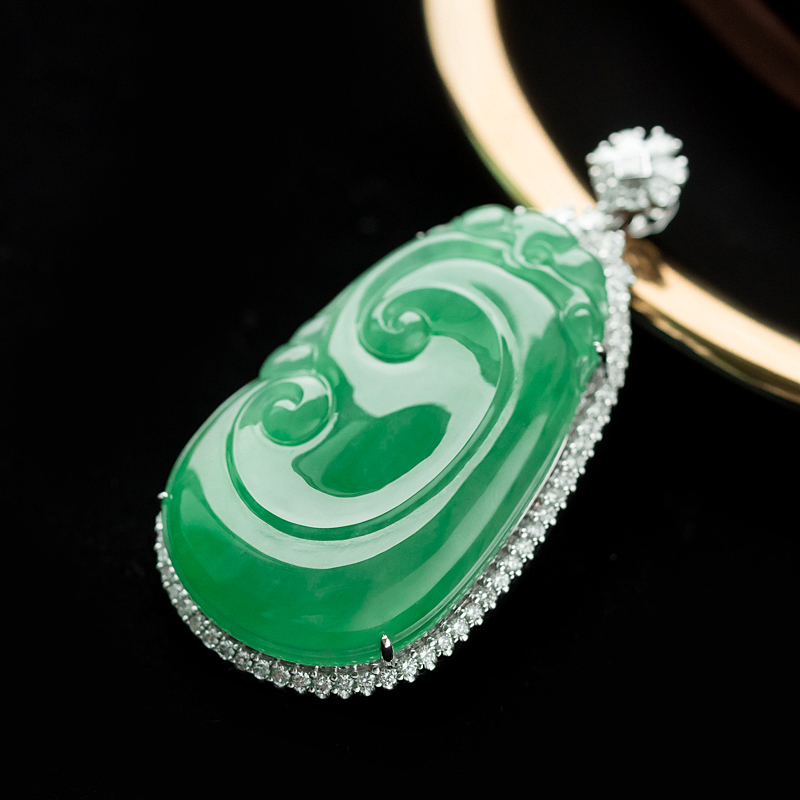 • [名  称] 18K冰种翠绿翡翠如意吊坠