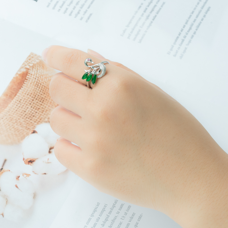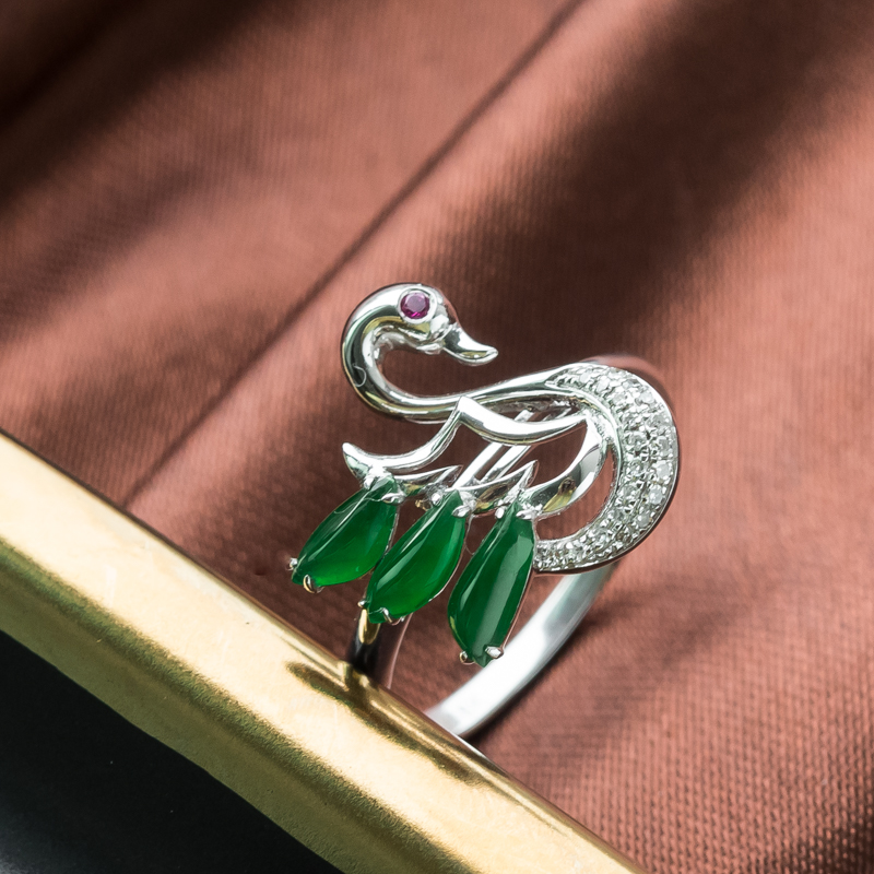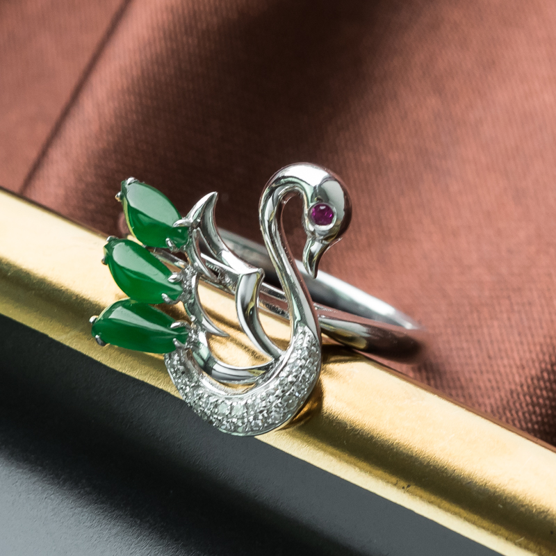 • [名  称] 18K冰种翠绿翡翠天鹅戒指