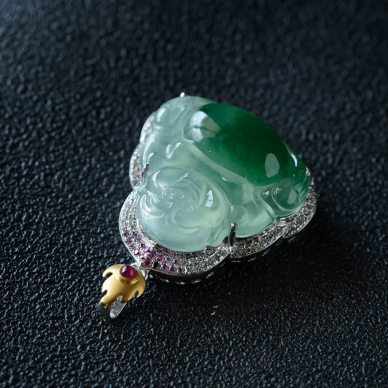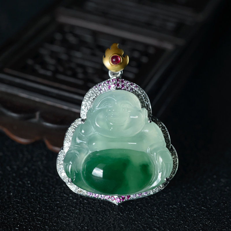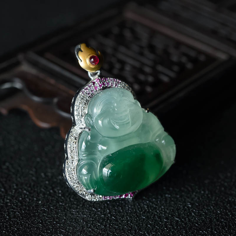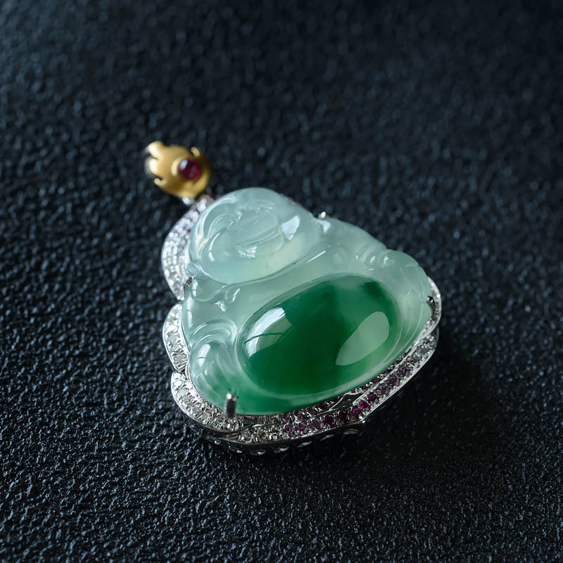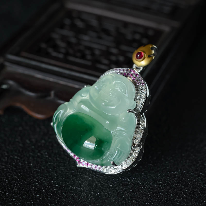• 18K冰种飘翠翡翠弥勒佛吊坠