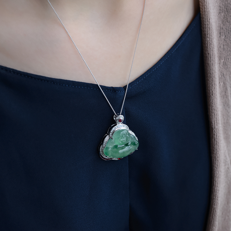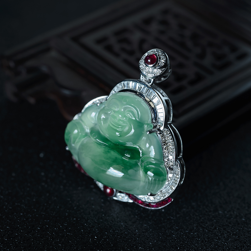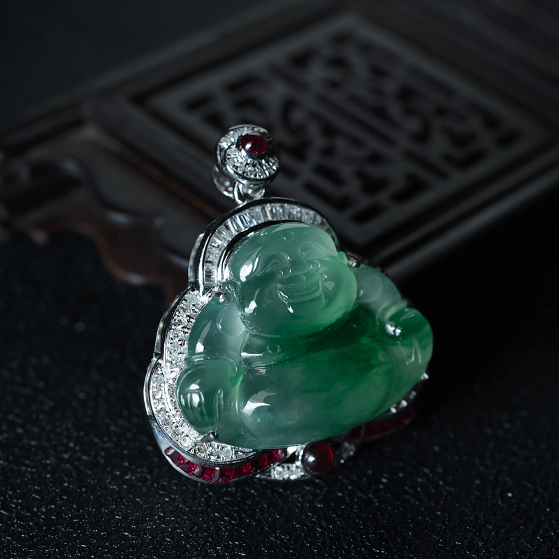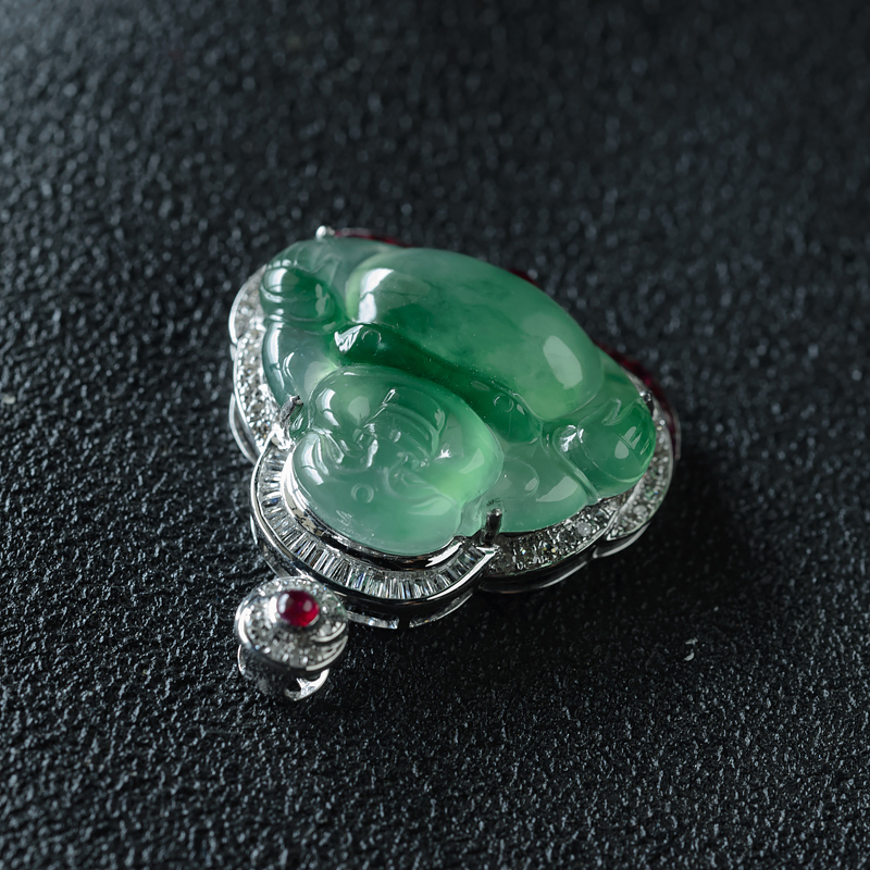 • 18K冰种飘翠翡翠弥勒佛吊坠