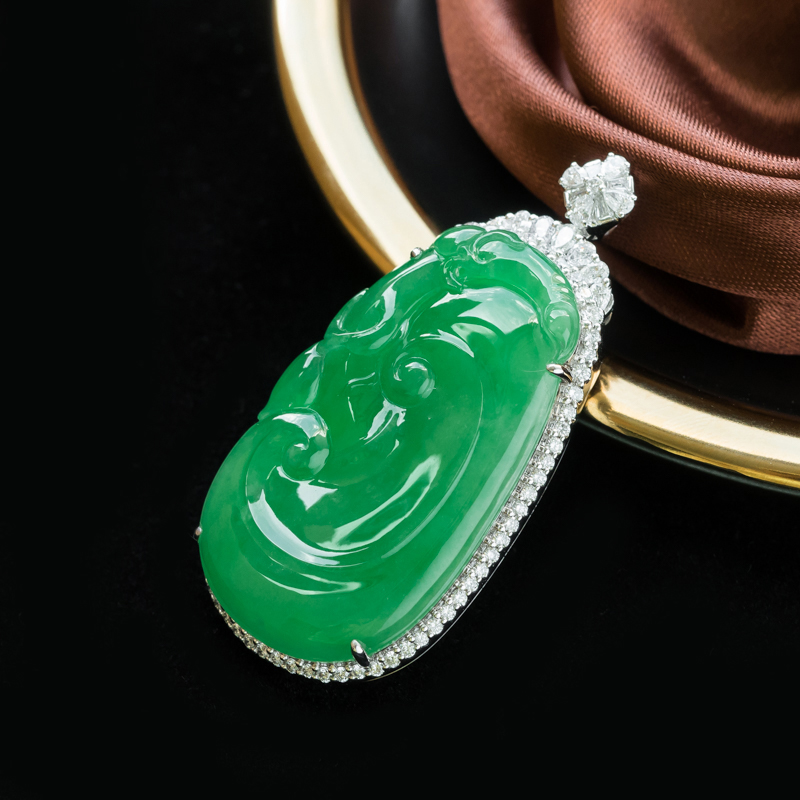 • [名  称] 18K冰种阳绿翡翠如意吊坠