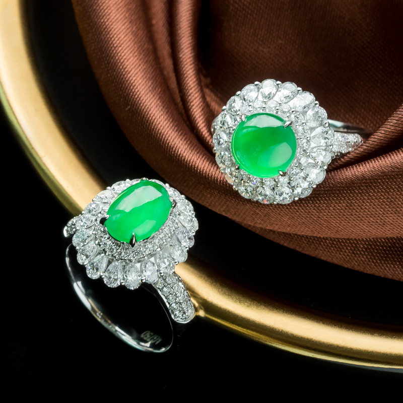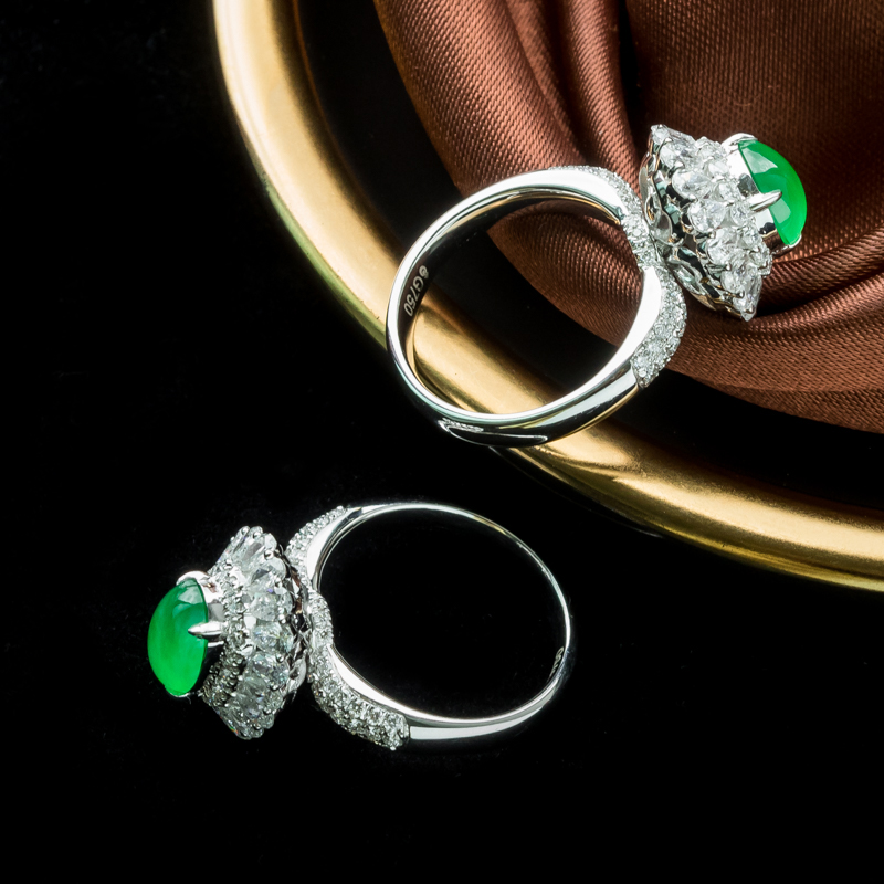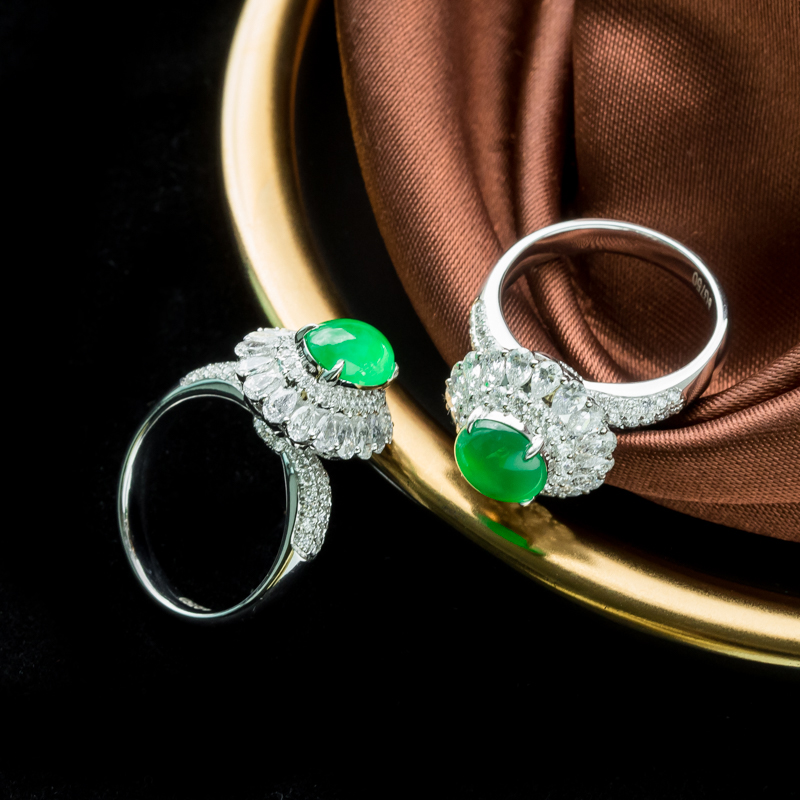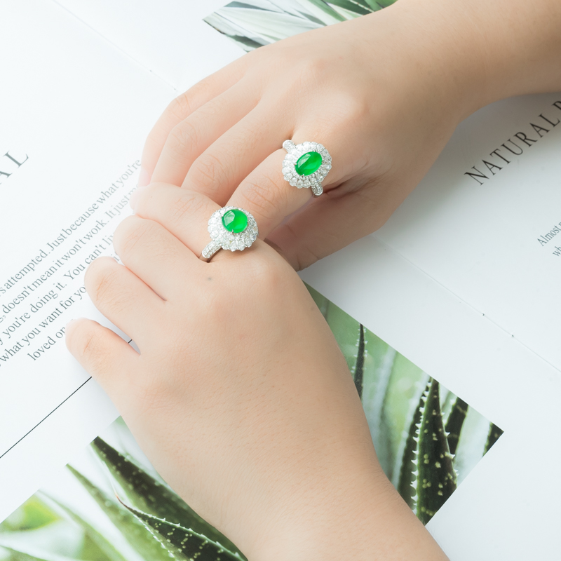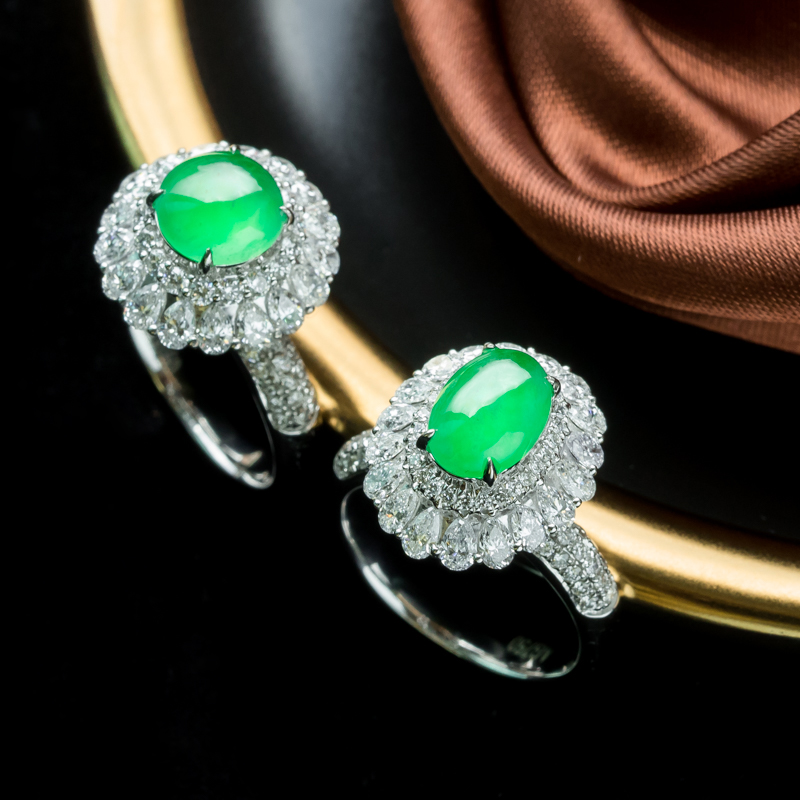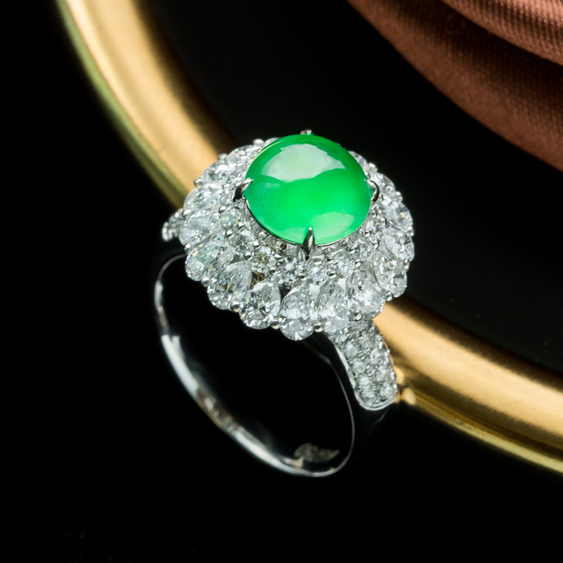• 18K冰种阳绿翡翠戒指(单件)