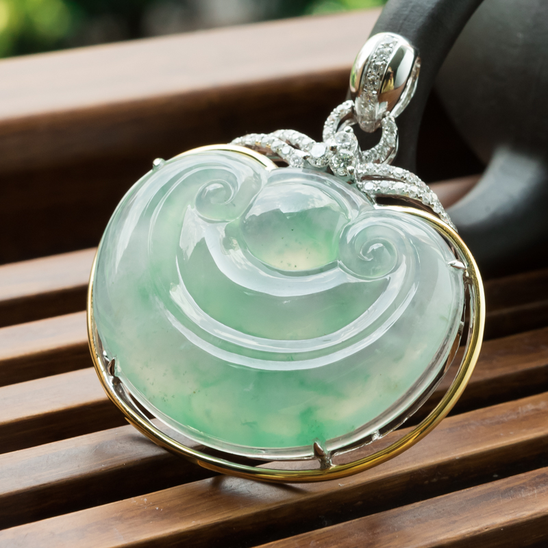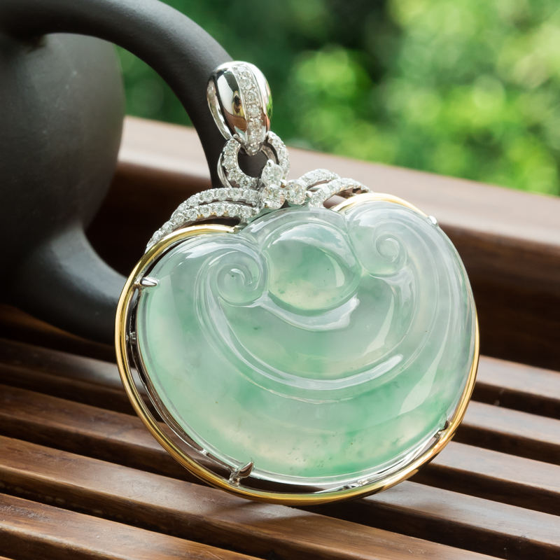 • 18K冰种飘翠翡翠如意吊坠