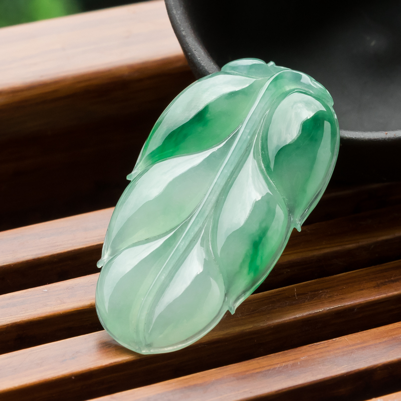 • 冰种飘翠翡翠金枝玉叶吊坠