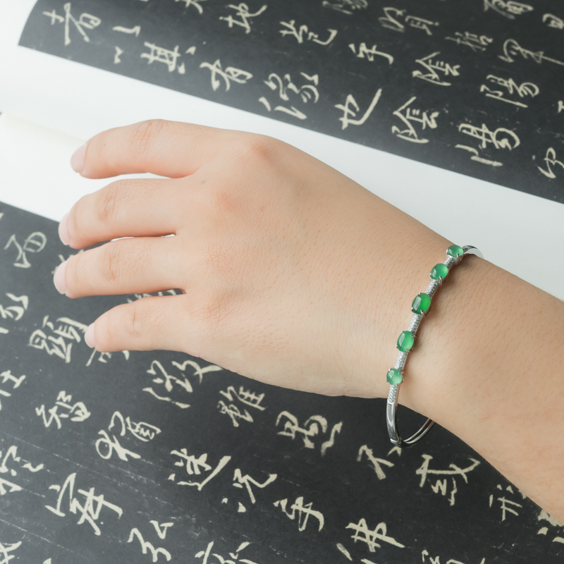 • 56.5mm18K冰种翠绿翡翠贵妃镯