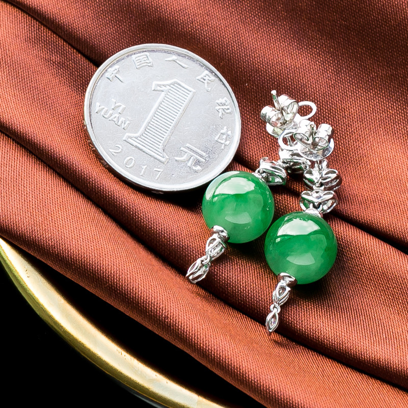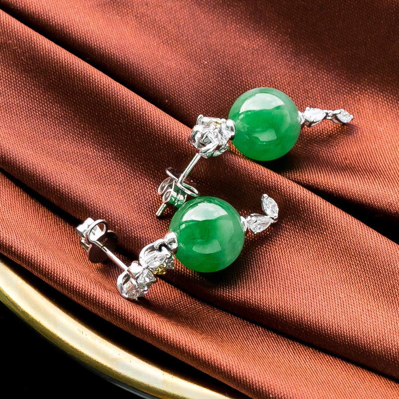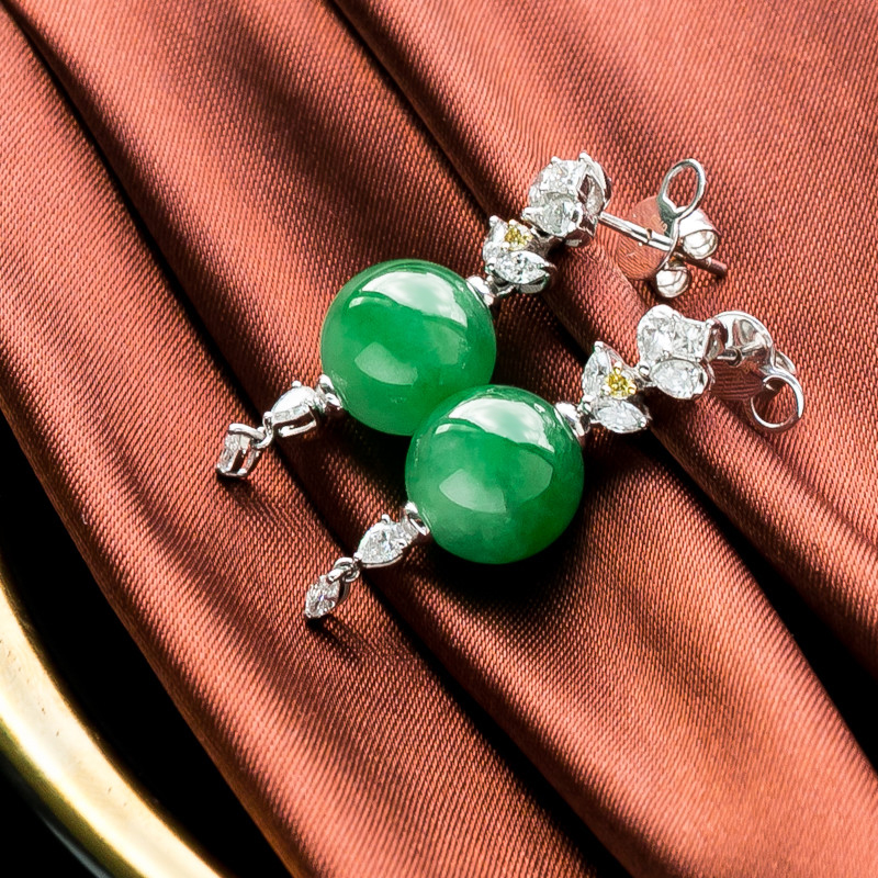 • 18K冰种翠绿翡翠耳坠