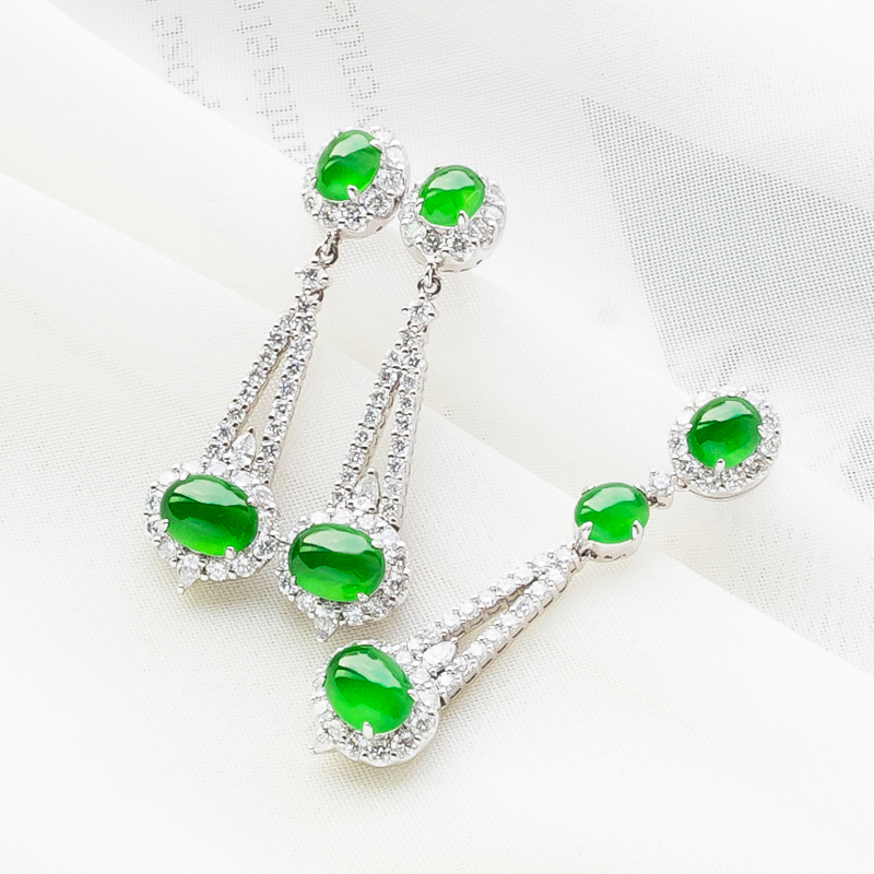 • 18K冰种阳绿翡翠耳坠/吊坠套装