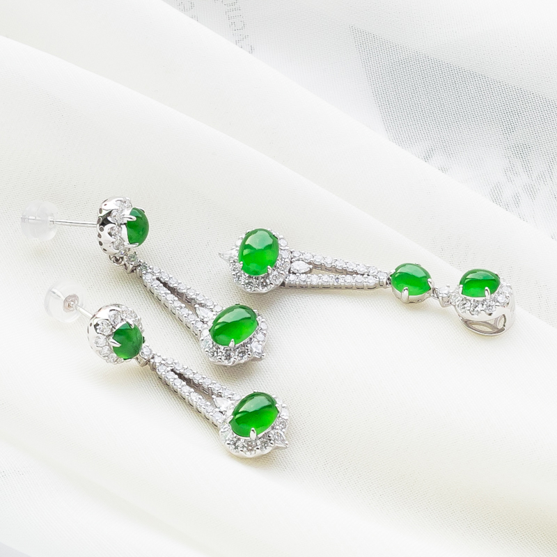 • [名  称] 18K冰种阳绿翡翠耳坠/吊坠套装