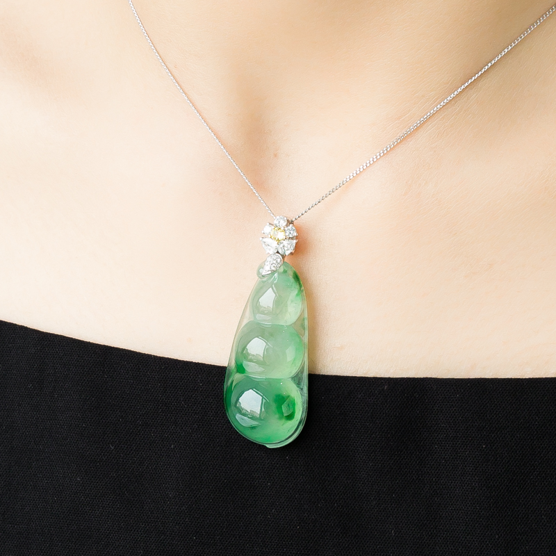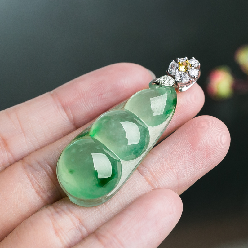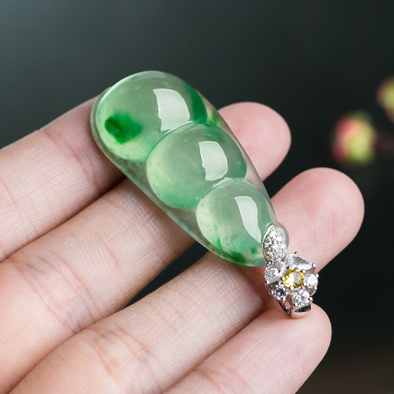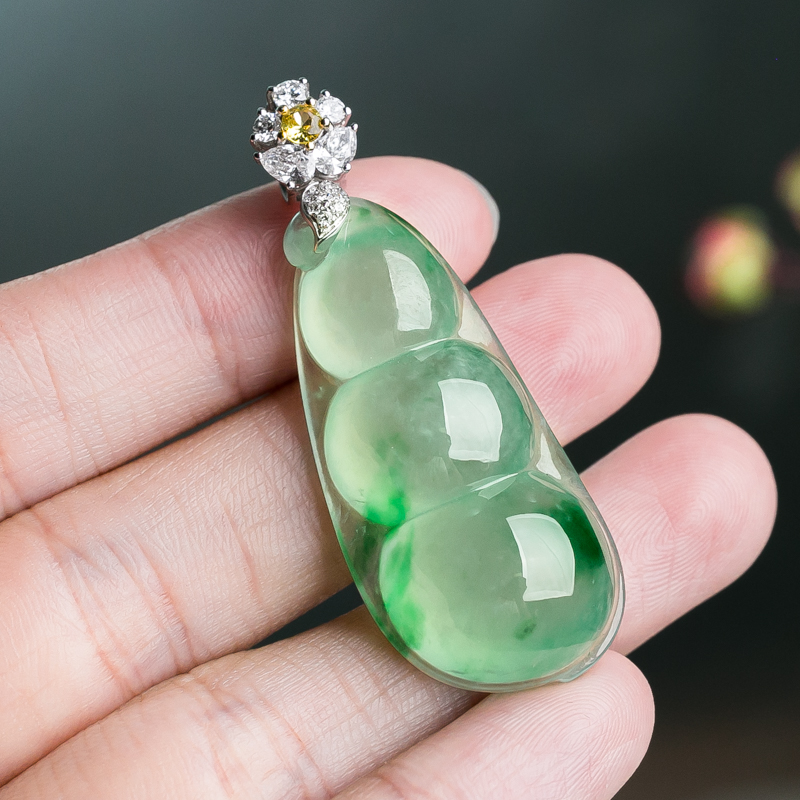 • 18K冰种飘翠翡翠福豆吊坠