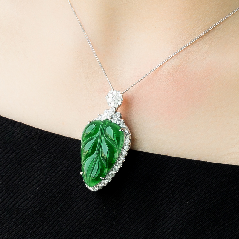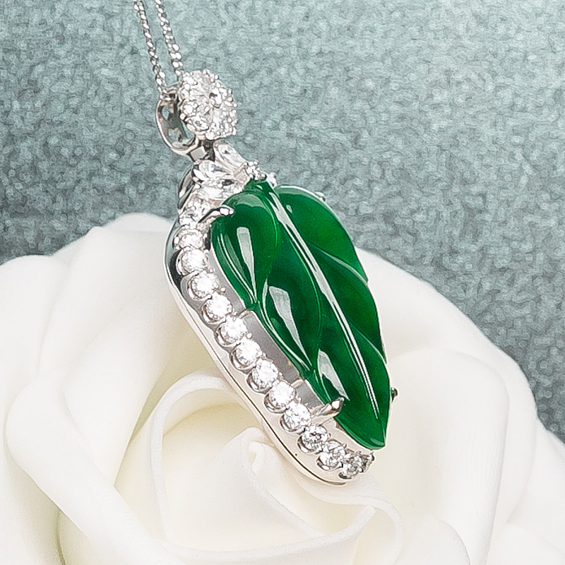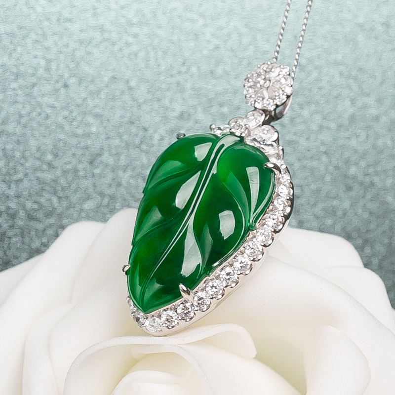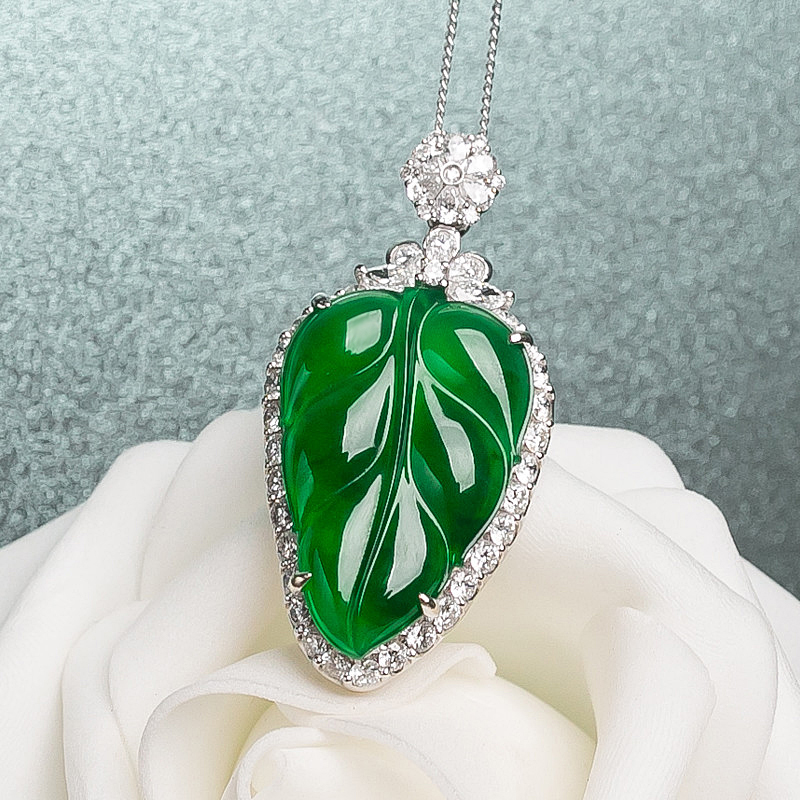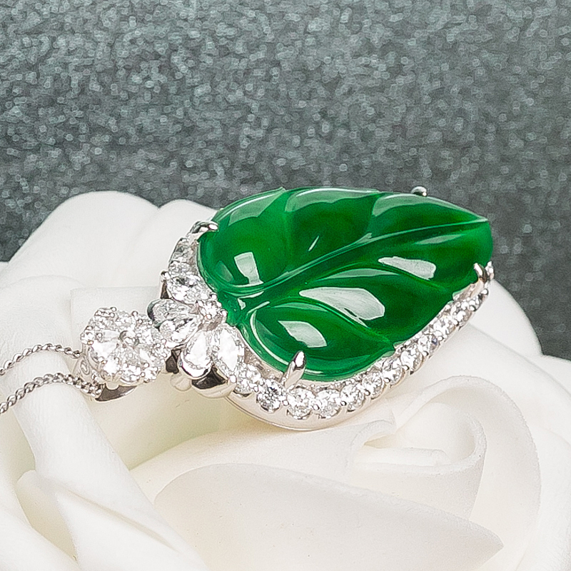 • 18K冰种阳绿翡翠金枝玉叶吊坠