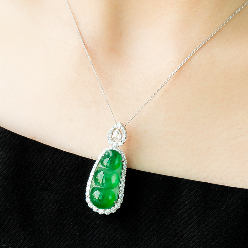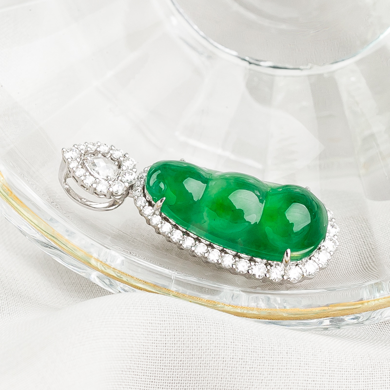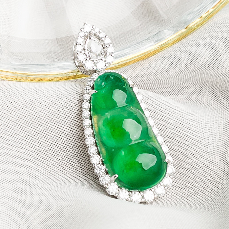 • [名  称] 18K冰种阳绿翡翠福豆吊坠
