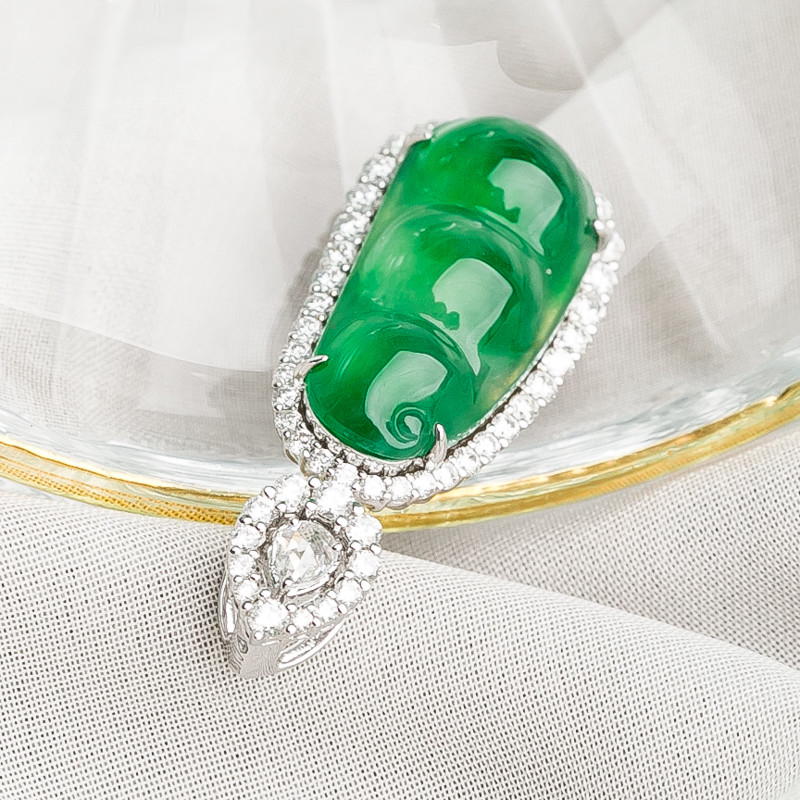 为了让珠宝的价值得到更大程度的体现,每一个作品都是根据料子本身做专业的设计,让每件作品都有灵魂。设计好以后会根据设计创意做专业的镶嵌或雕刻,确保每个接口都严丝合缝,每一刀都流畅自如