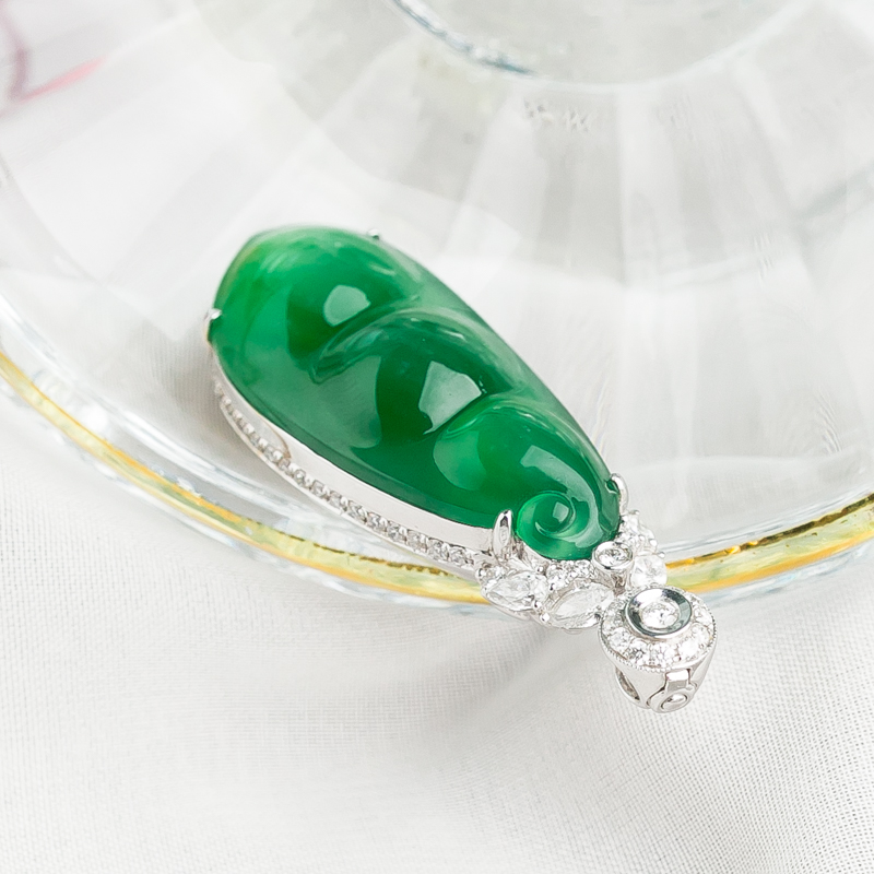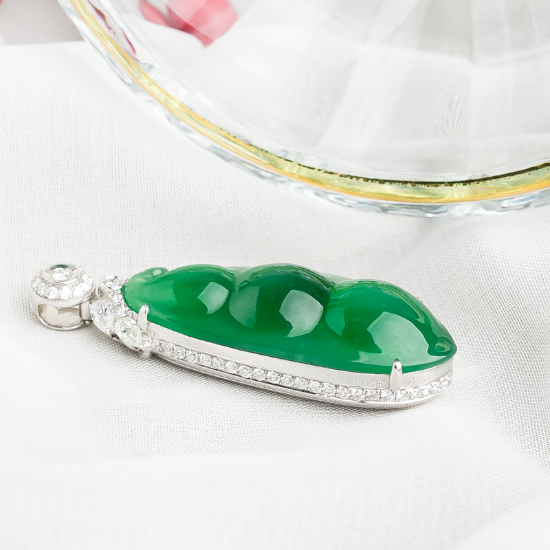 • [名  称] 18K冰种翠绿翡翠福豆吊坠