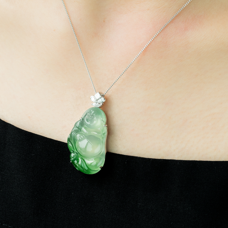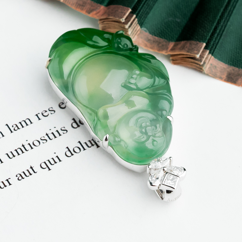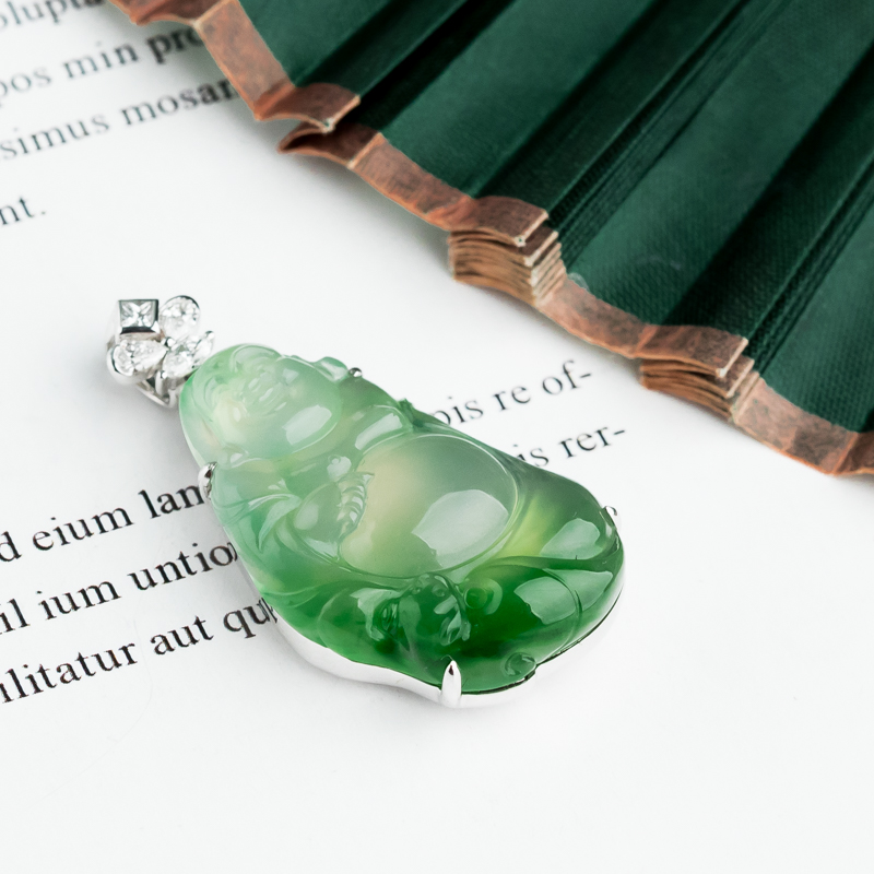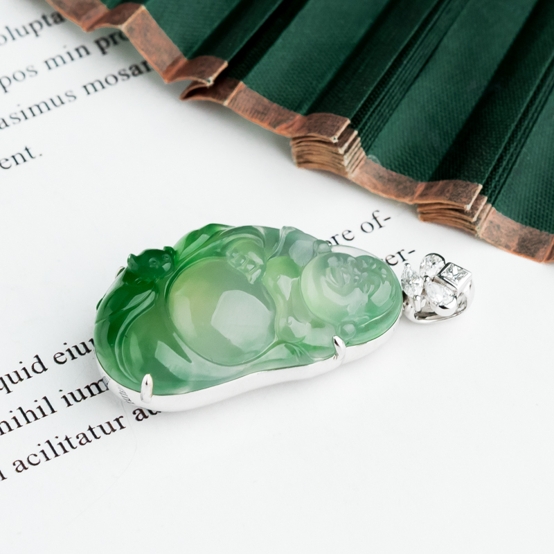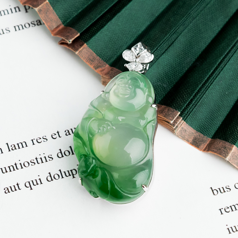 • 18K冰种飘翠翡翠弥勒佛吊坠