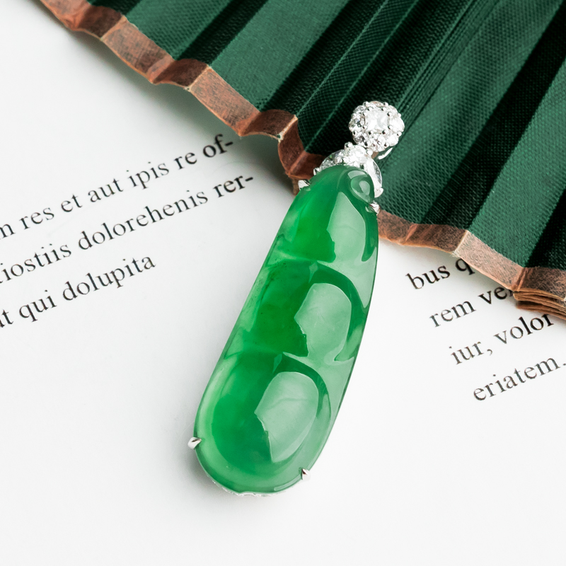 • [名  称] 18K冰种翠绿翡翠福豆吊坠