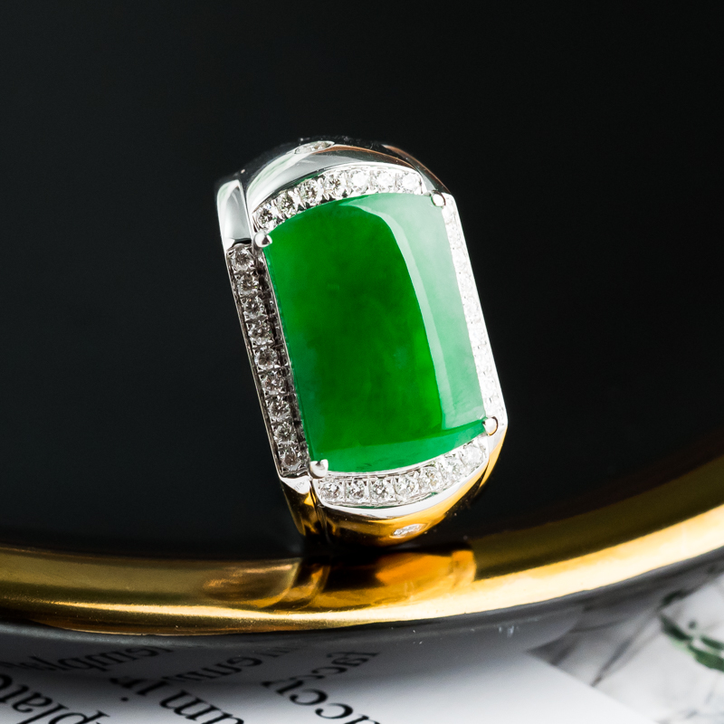 • 18K冰种阳绿翡翠戒指