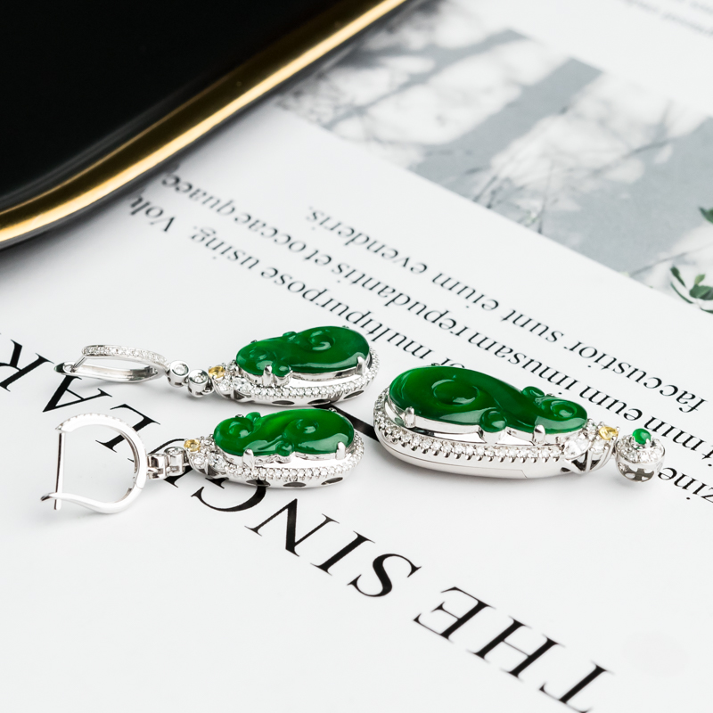 • [名  称] 18K冰种阳绿翡翠耳坠/吊坠套装