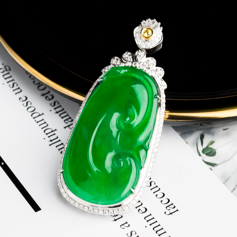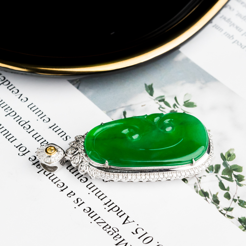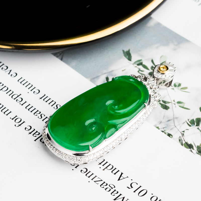• 18K冰种阳绿翡翠如意吊坠