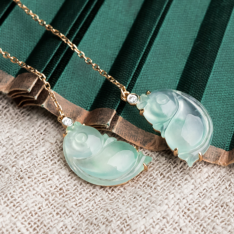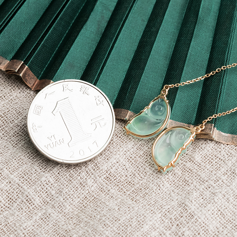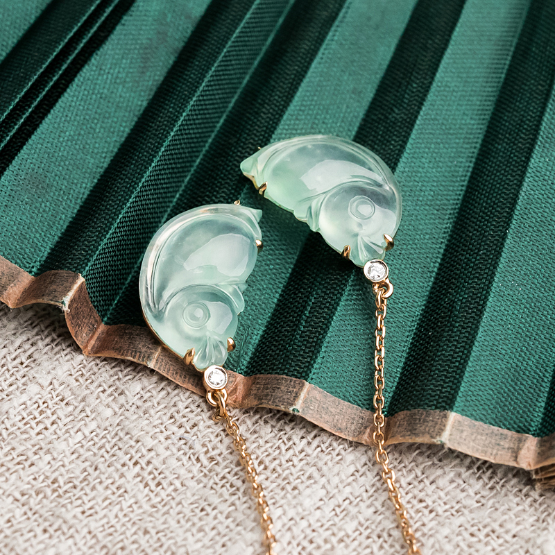 • 18K冰种淡晴水翡翠年年有余耳坠