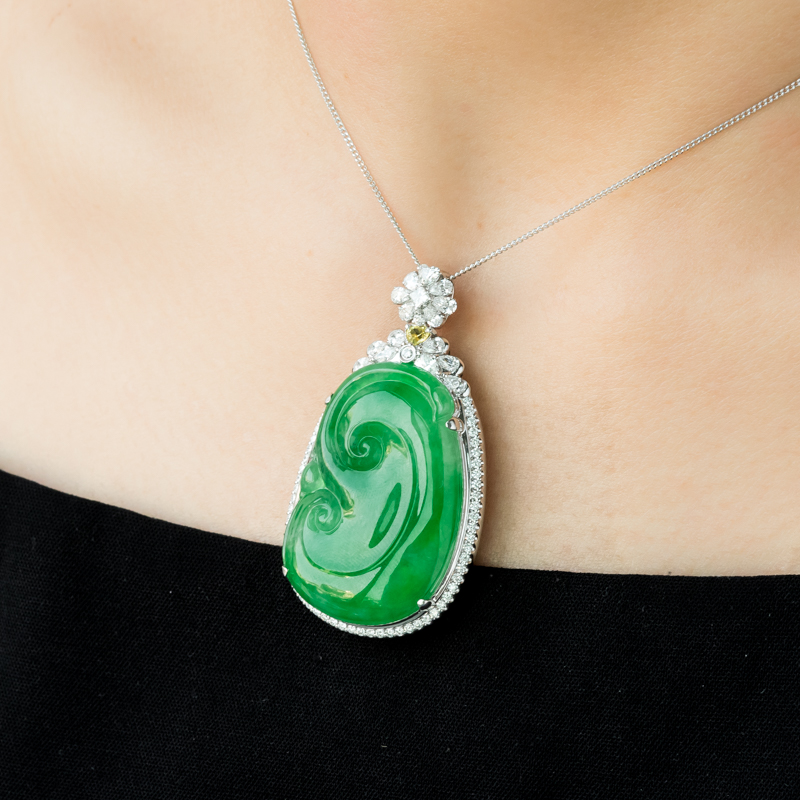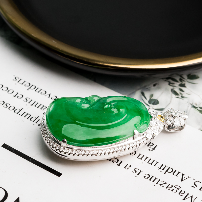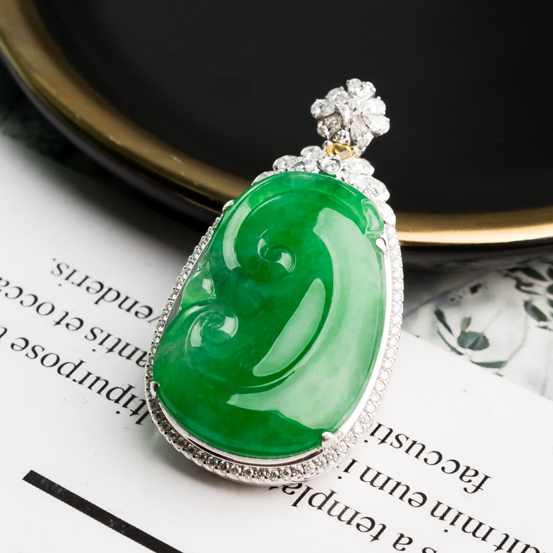 • [名  称] 18K冰种阳绿翡翠如意吊坠