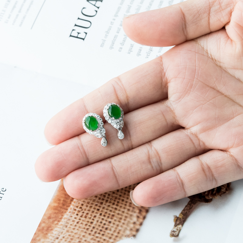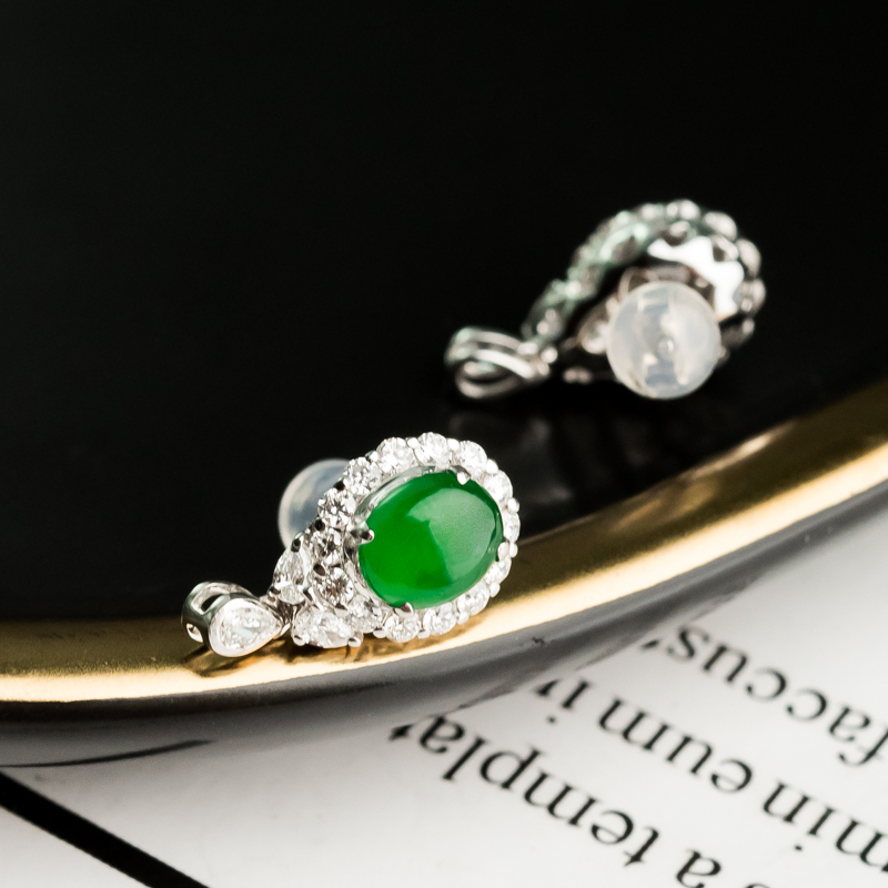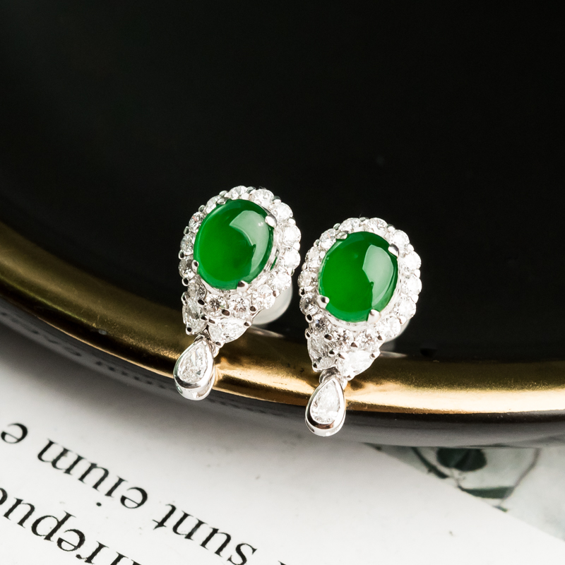• 18K冰种阳绿翡翠耳钉