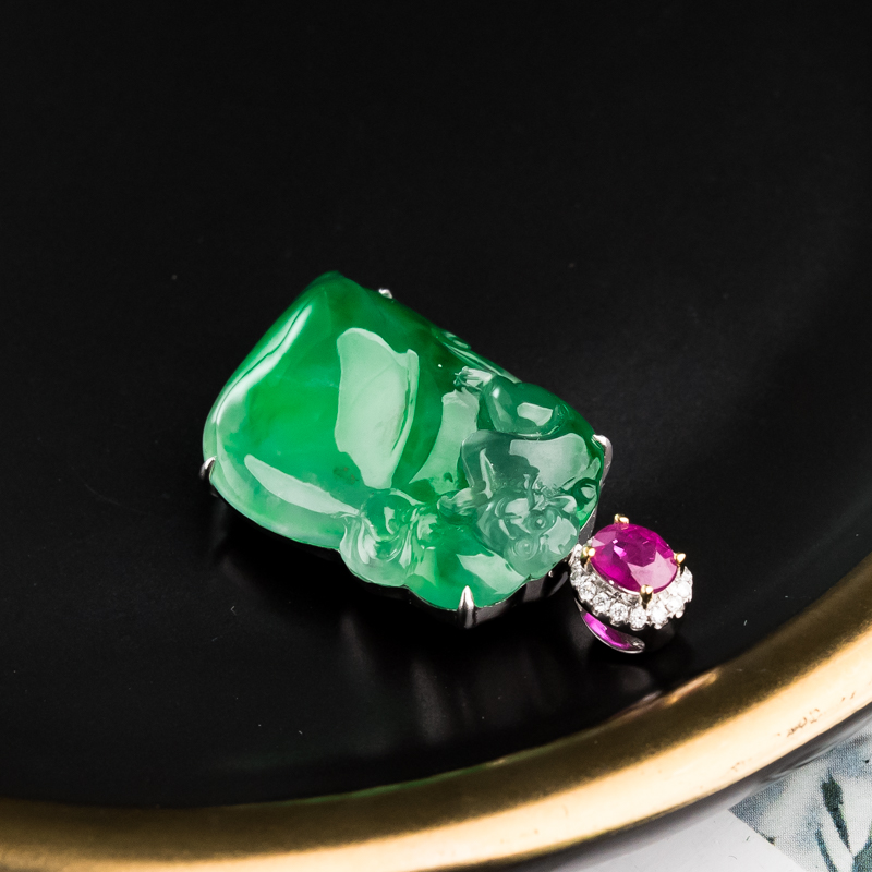 为了让珠宝的价值得到更大程度的体现,每一个作品都是根据料子本身做专业的设计,让每件作品都有灵魂。设计好以后会根据设计创意做专业的镶嵌或雕刻,确保每个接口都严丝合缝,每一刀都流畅自如