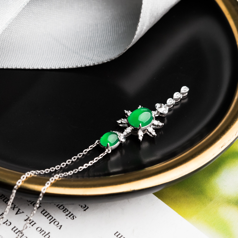 • 18K冰种阳绿翡翠项链