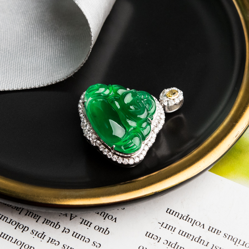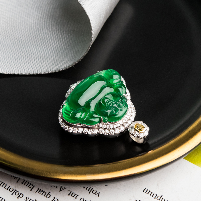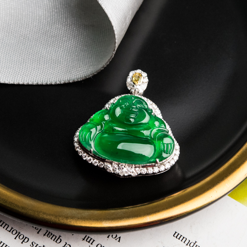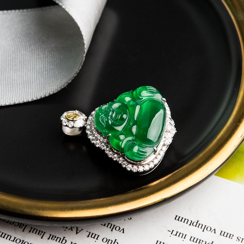 • 18K冰种阳绿翡翠弥勒佛吊坠