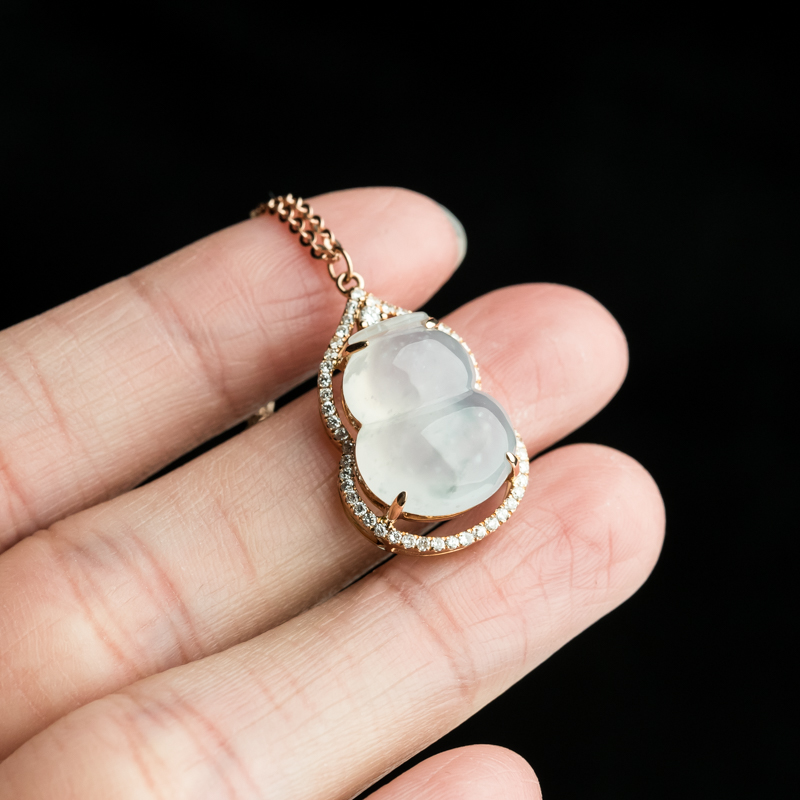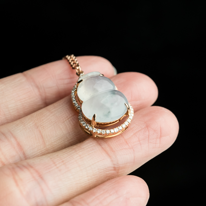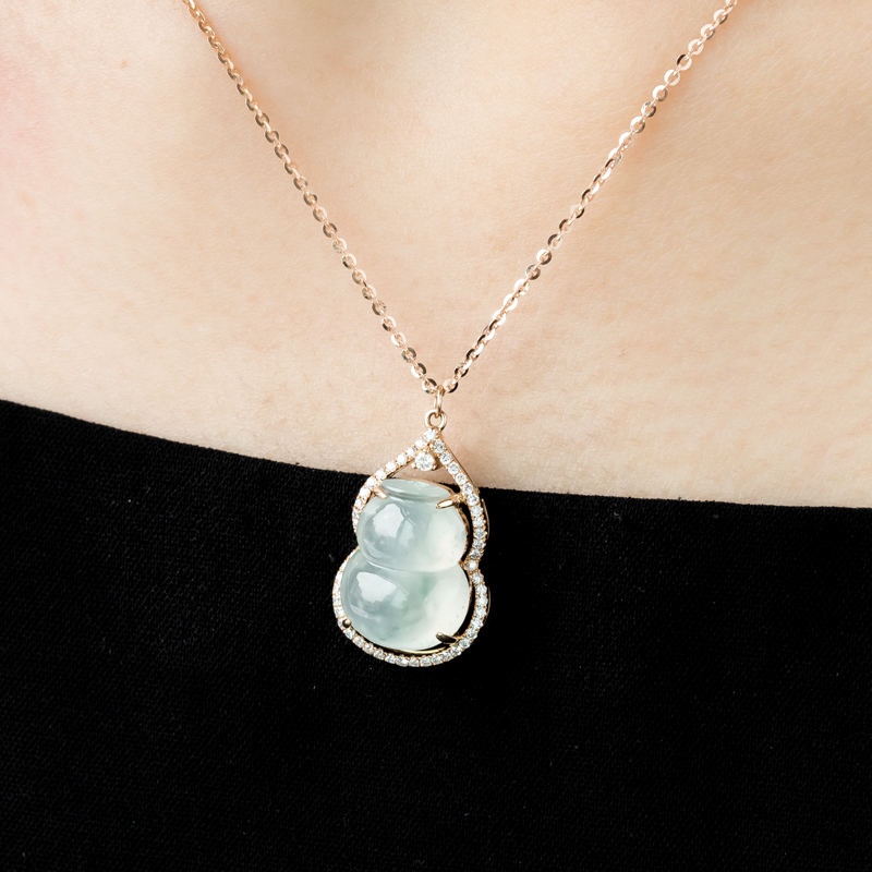 • [名  称] 18K冰种飘花翡翠福禄项链